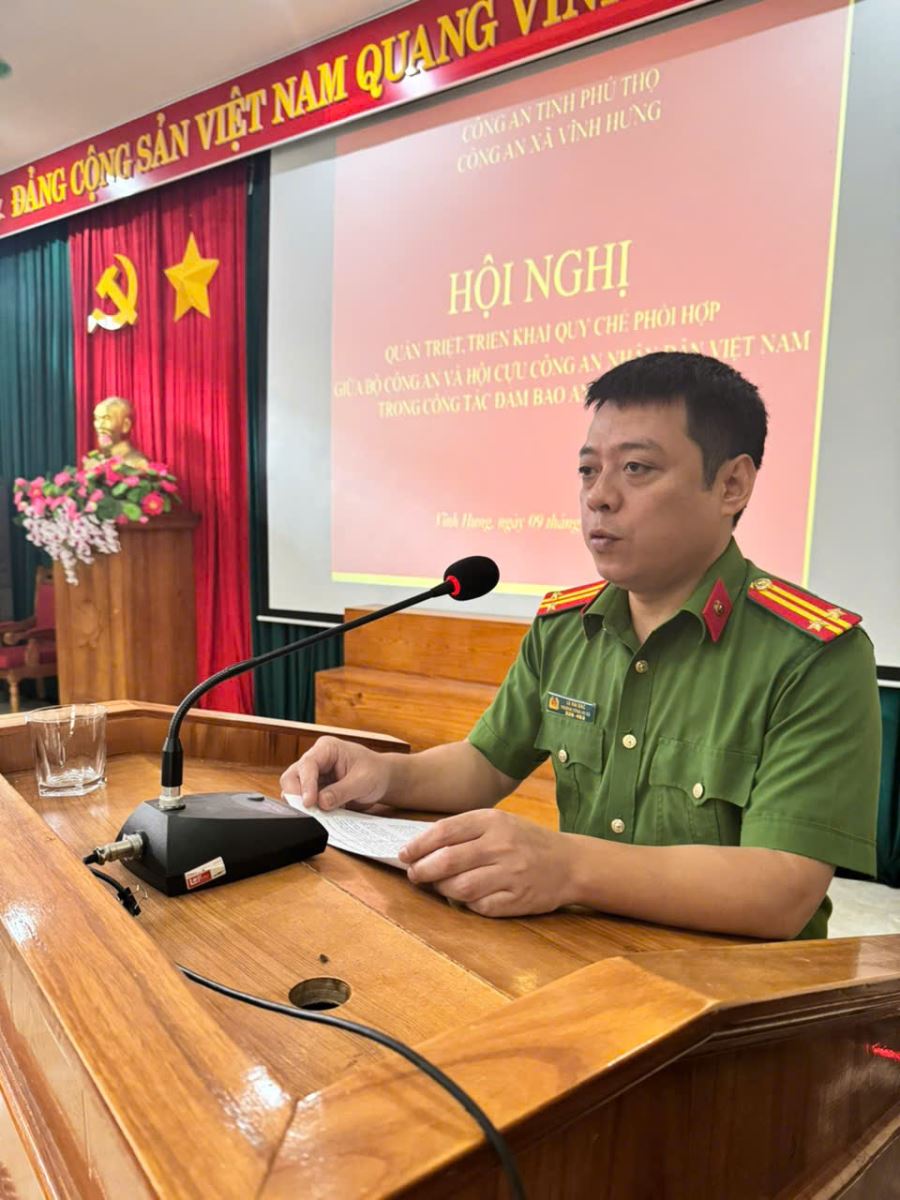 Thực hiện chỉ đạo của Công an tỉnh Phú Thọ về việc nâng cao hiệu quả công tác phối hợp trong bảo đảm an ninh, trật tự (ANTT) ở cơ sở, ngày 09/10/2025, Công an xã Vĩnh Hưng đã tổ chức hai hội nghị quan trọng nhằm triển khai các nhiệm vụ phối hợp với lực lượng tham gia bảo vệ ANTT ở cơ sở và Hội Cựu Công an Nhân dân xã.