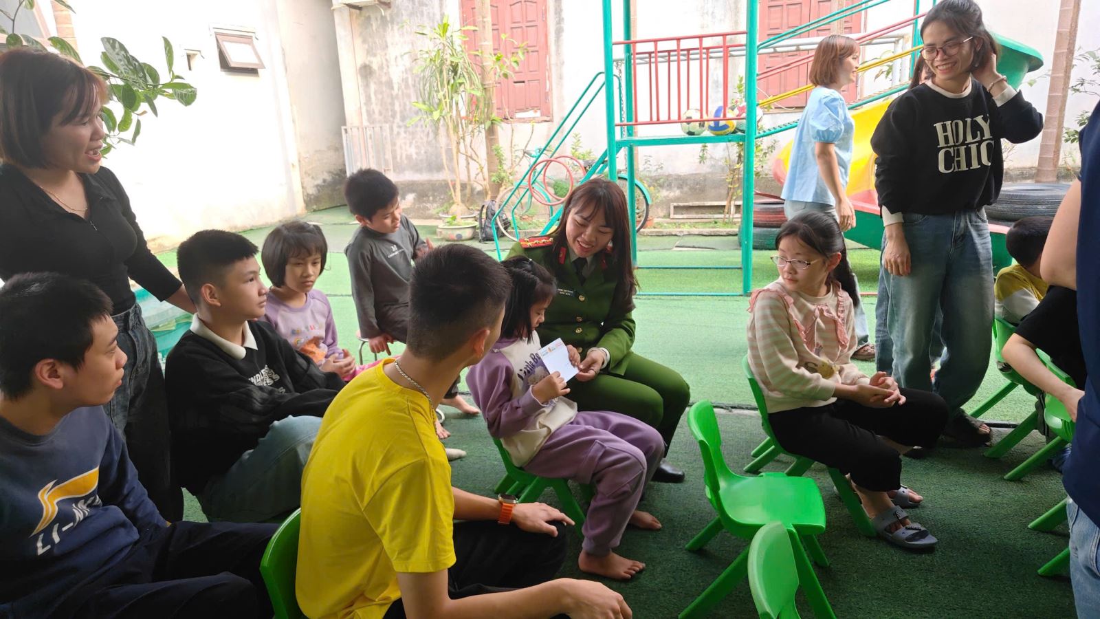Công an xã Vĩnh Hưng tặng quà các em nhỏ tại Trung tâm Giáo dục hỗ trợ hòa nhập An Tuệ