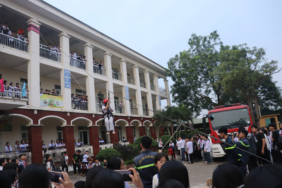 Không chỉ thực hành, học sinh còn được trao đổi, đặt câu hỏi về các tình huống cháy nổ có thể xảy ra trong khu dân cư, gia đình hoặc trường học. Qua đó, các em hiểu rõ hơn trách nhiệm của mỗi cá nhân trong việc phòng ngừa nguy cơ và cách xử lý bước đầu khi có sự cố, góp phần giảm thiểu thiệt hại và bảo đảm an toàn cho bản thân.