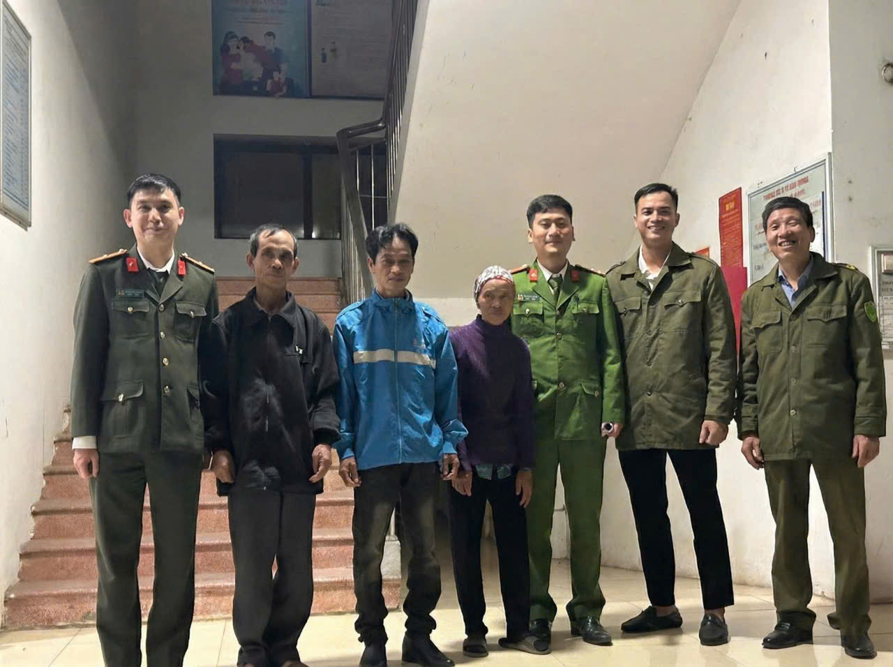Gia đình đến đón cụ Quý về nhà Nhờ sự vào cuộc tích cực và trách nhiệm, đến 22 giờ 15 phút cùng ngày, anh Nguyễn Hồng Trường (sinh năm 1976), là em trai của cụ Quý, đã có mặt tại trụ sở Công an xã để đón chị về nhà. Xúc động trước sự hỗ trợ tận tình của lực lượng Công an, gia đình anh Trường đã gửi lời cảm ơn sâu sắc đến cán bộ, chiến sĩ Công an xã Vĩnh Phú khi đã tận tâm giúp đỡ người thân trở về an toàn trước thời khắc chuyển giao năm mới.