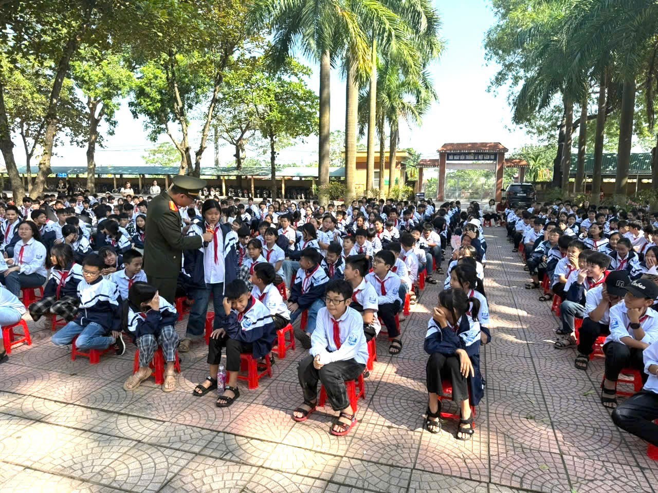 Công an xã Vĩnh Thành tuyên truyền phòng chống tội phạm trên không gian mạng, an toàn giao thông và phòng chống bạo lực học đường (14/11/2025)