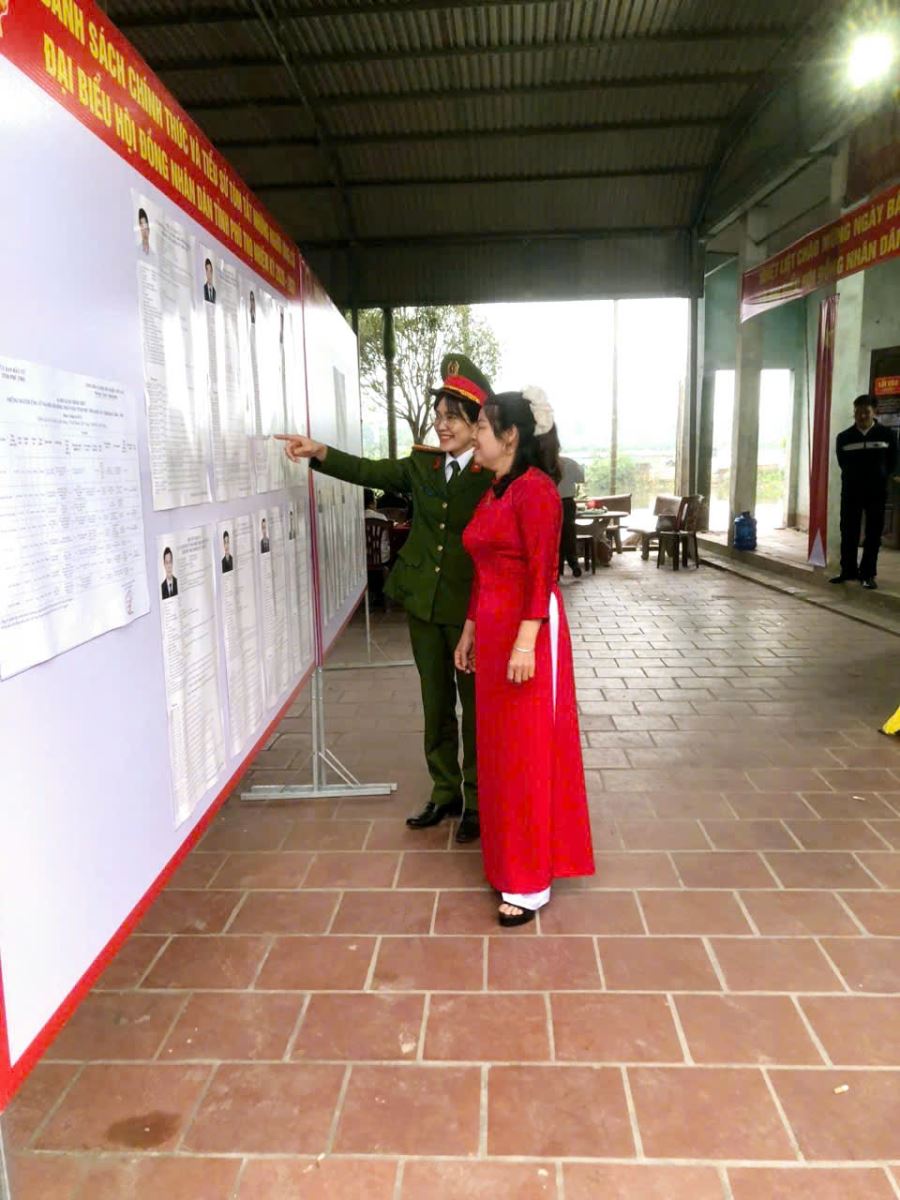 Trong ngày bầu cử, ngay từ 6 giờ sáng, các cán bộ, chiến sĩ đã có mặt đầy đủ tại các điểm được phân công. Lực lượng Công an không chỉ thực hiện tốt nhiệm vụ giữ gìn trật tự, phân luồng giao thông, sắp xếp phương tiện cho cử tri mà còn tích cực phối hợp với các tổ bầu cử hướng dẫn người dân thực hiện quyền và nghĩa vụ công dân theo đúng quy định của pháp luật.