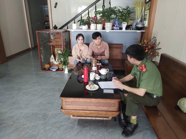 Hình ảnh Công an xã Vĩnh Tường hướng dẫn nhà nghỉ khai báo tạm trú Không chỉ tuyên truyền trên các phương tiện thông tin đại chúng, Công an xã Vĩnh Tường trực tiếp đến các khách sạn, nhà nghỉ, doanh nghiệp có người nước ngoài làm việc... trực tiếp kiểm tra, hướng dẫn cơ sở lưu trú trong việc khai báo tạm trú cho người nước ngoài theo quy định của pháp luật; qua đó kịp thời phát hiện, xử lý các cơ sở lưu trú không thực hiện khai báo tạm trú cho người nước ngoài theo quy định.