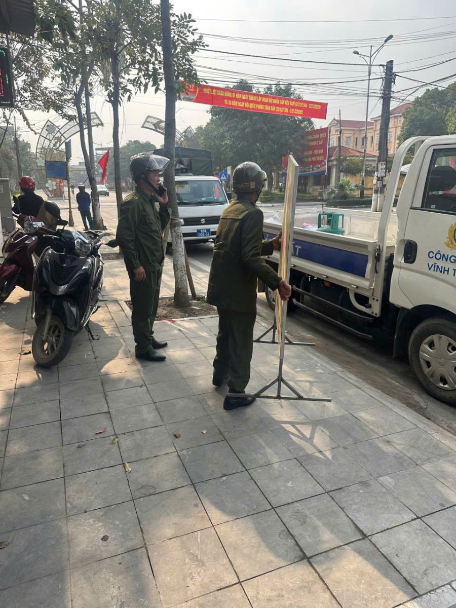 Công an xã Vĩnh Tường phối hợp Ban an toàn giao thông xã ra quân tuyên truyền, kiểm tra, chấn chỉnh, xử lý tình trạng lấn chiếm, sử dụng trái phép lòng đường, hành lang ATGT trên địa bàn. (12/01/2026)