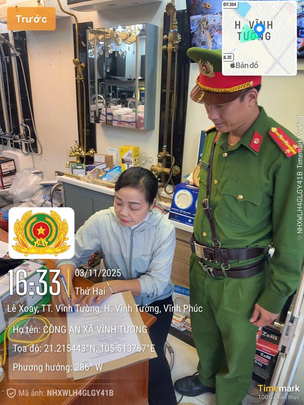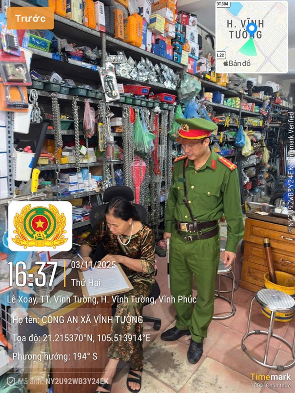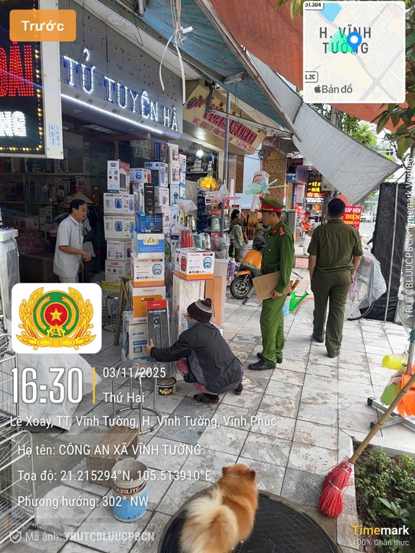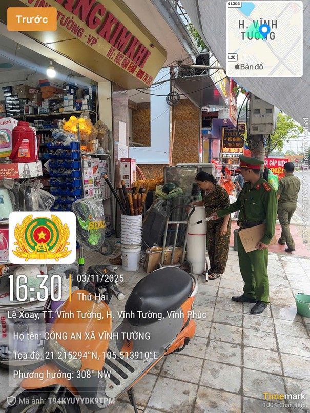 Công an xã Vĩnh Tường tăng cường tuần tra nhắc nhở người dân không lấn chiếm vỉa hè, lòng đường (11/11/2025)