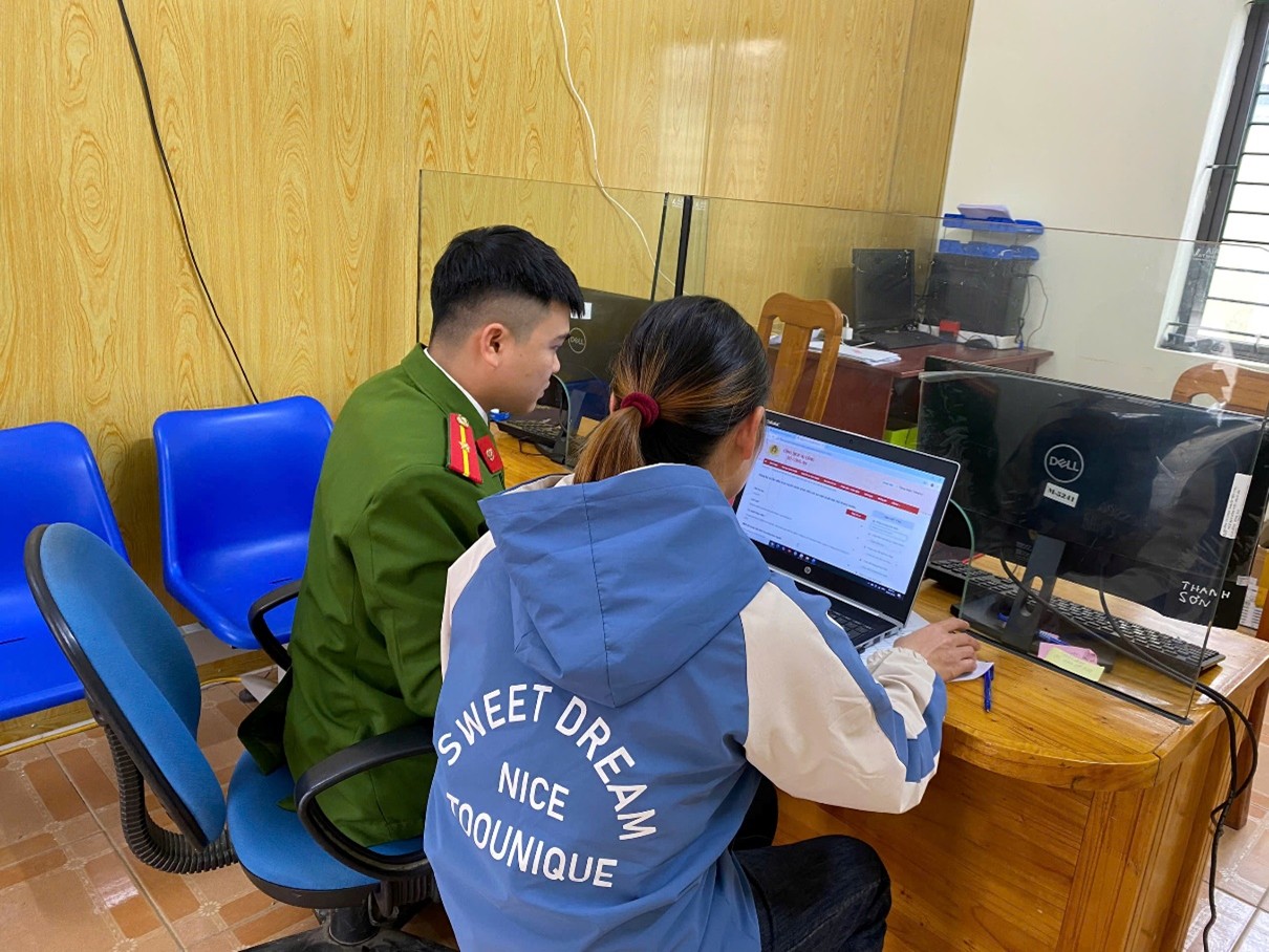 Công an xã Xuân Đài hướng dẫn đồng bào dân tộc thiểu số thực hiện dịch vụ công đăng ký xe trực tuyến