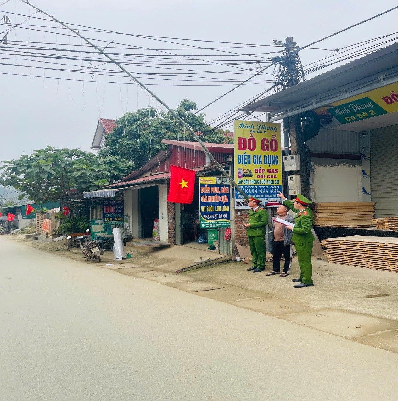 Qua kiểm tra thực tế trên các tuyến Quốc lộ 32B, các tuyến tỉnh lộ và đường liên thôn, liên xã trên địa bàn, Công an xã Xuân Đài phát hiện vẫn còn một số hộ dân dựng cây nêu sát đường dây điện dân sinh, sử dụng dây điện, đèn trang trí mắc tạm bợ; một số trường hợp dựng cây nêu lấn chiếm lòng, lề đường, che khuất tầm nhìn của người tham gia giao thông, tiềm ẩn nguy cơ mất an toàn về người và tài sản.