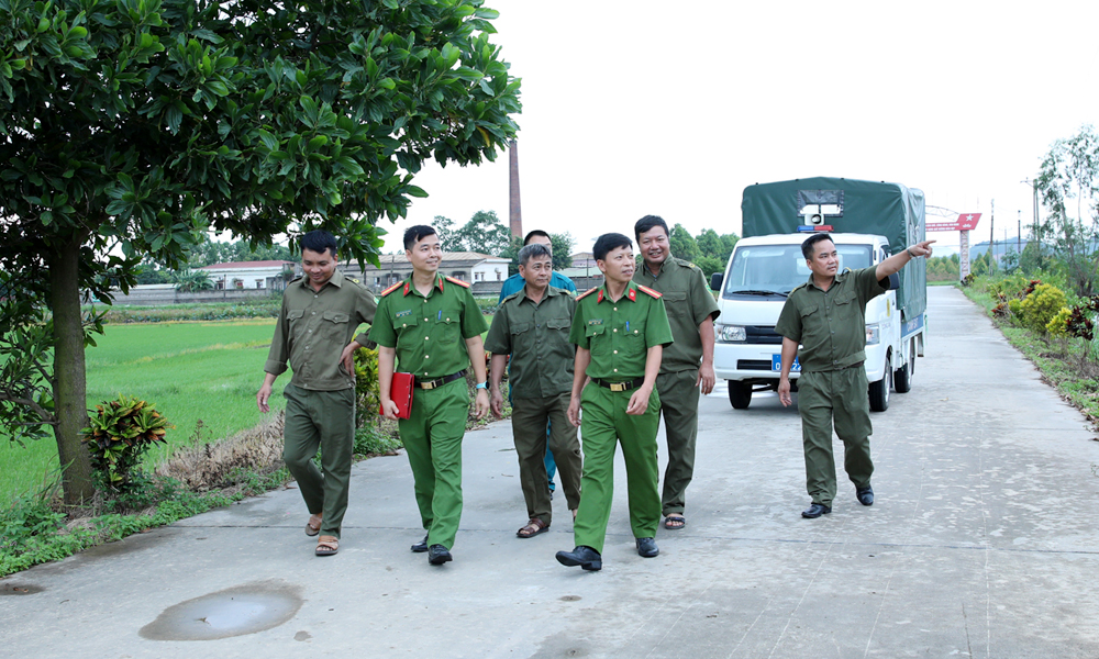 Công an xã Xuân Lãng trực tiếp làm việc, nắm tình hình, triển khai các nhiệm vụ đảm bảo an ninh công nhân tại các doanh nghiệp