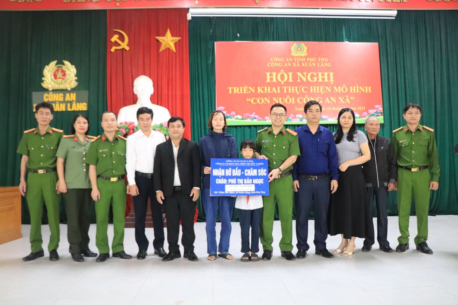 Trước hoàn cảnh đó, Công an xã Xuân Lãng đã chủ động rà soát, đề xuất và kết nối với các tổ chức, doanh nghiệp trên địa bàn nhằm huy động các nguồn lực xã hội hóa hỗ trợ trẻ em mồ côi, có hoàn cảnh khó khăn. Trên cơ sở đề nghị của Công an xã, Công ty Cổ phần Thép Việt Đức đã nhận hỗ trợ cháu Phó Thị Bảo Ngọc với mức 1.000.000 đồng/tháng trong 24 tháng, tổng kinh phí 24.000.000 đồng.