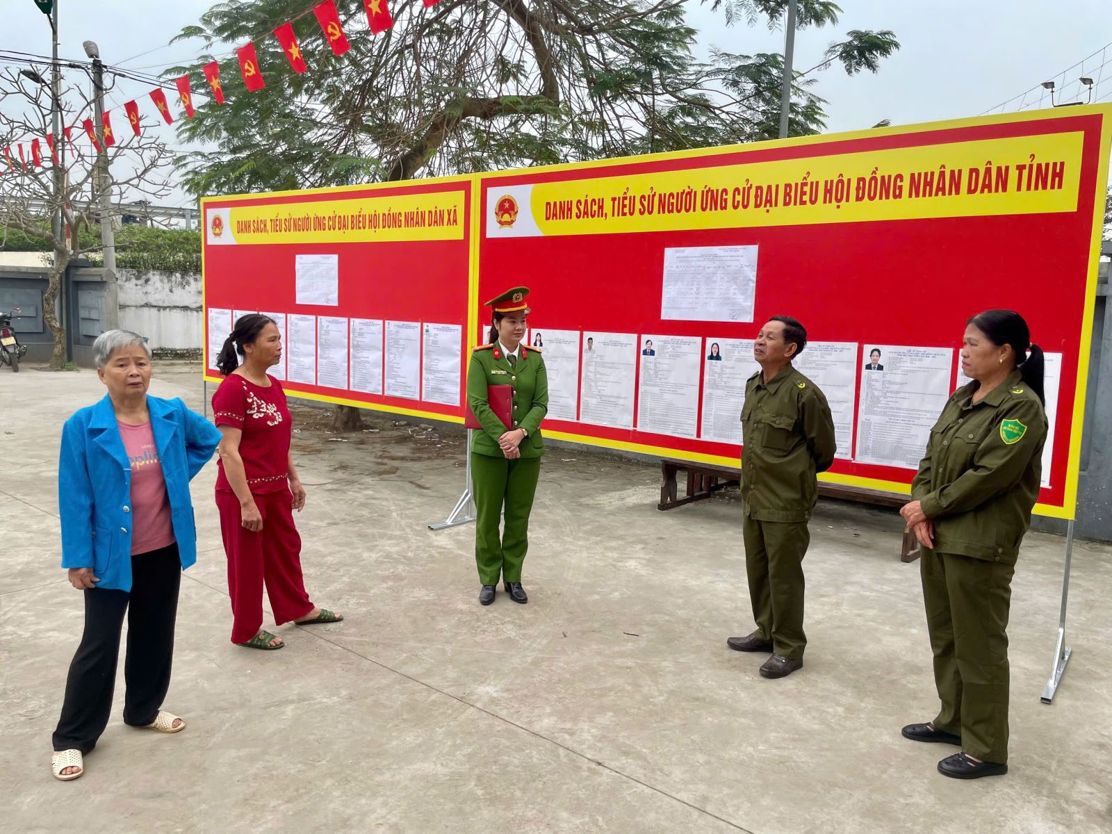 Lực lượng Công an xã cũng phối hợp các tổ tự quản, lực lượng tham gia bảo vệ an ninh, trật tự ở cơ sở tăng cường tuần tra vào các khung giờ cao điểm; đẩy mạnh tuyên truyền, vận động Nhân dân chấp hành nghiêm quy định của pháp luật về bầu cử, tích cực tham gia giữ gìn an ninh, trật tự. Nội dung tuyên truyền được lồng ghép trong các buổi sinh hoạt cộng đồng và thông qua hệ thống truyền thanh cơ sở, góp phần nâng cao nhận thức, trách nhiệm của người dân đối với ngày bầu cử.