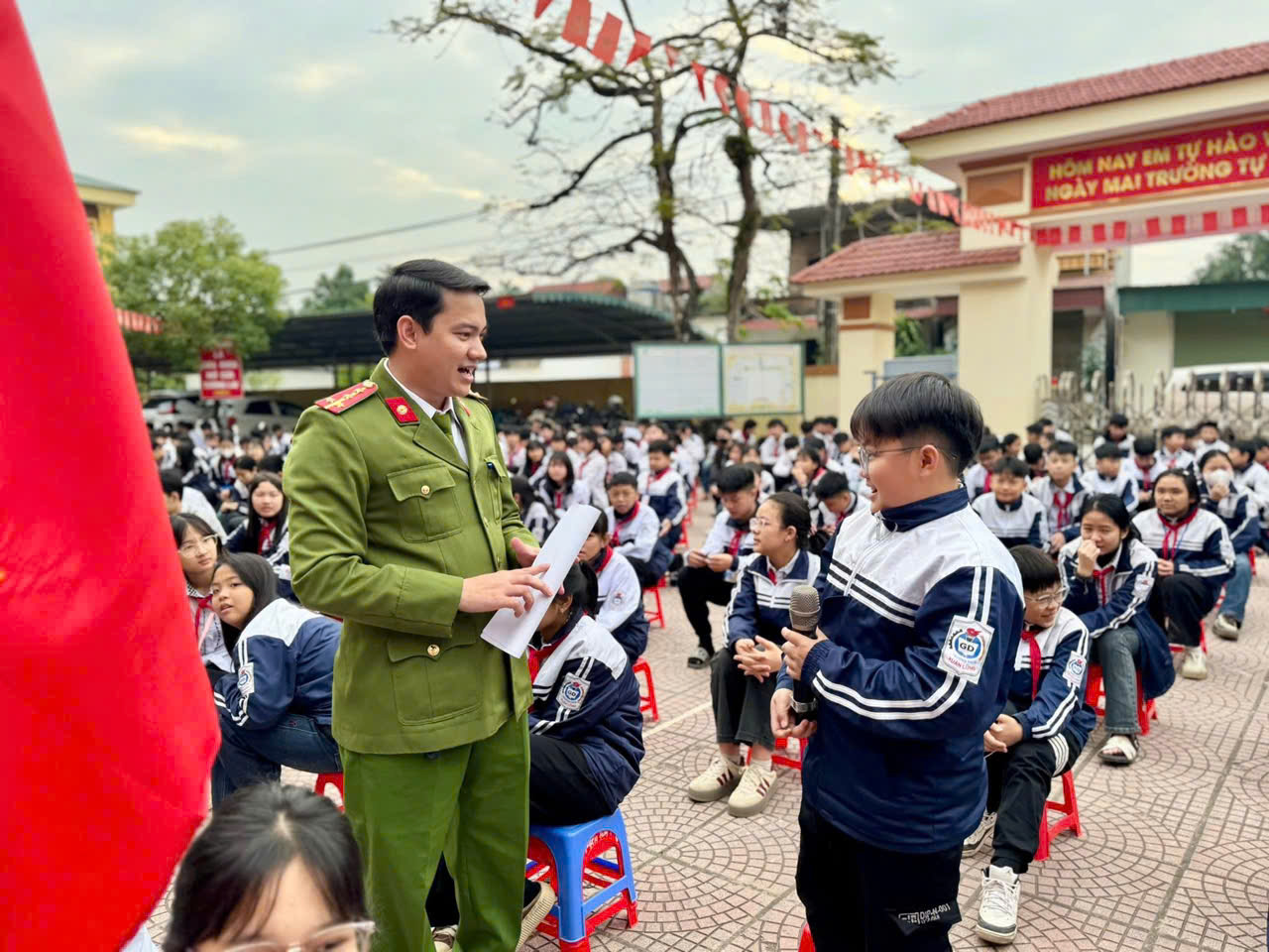 Xuất phát từ yêu cầu thực tiễn đó, sáng ngày 15/12/2025, Chi đoàn Công an xã Xuân Lũng đã phối hợp với Trường THCS Xuân Lũng tổ chức chương trình tuyên truyền, phổ biến, giáo dục pháp luật về “Phòng, chống bạo lực học đường” cho 476 cán bộ, giáo viên và học sinh toàn trường, góp phần xây dựng môi trường giáo dục an toàn, lành mạnh trong năm học 2025-2026.