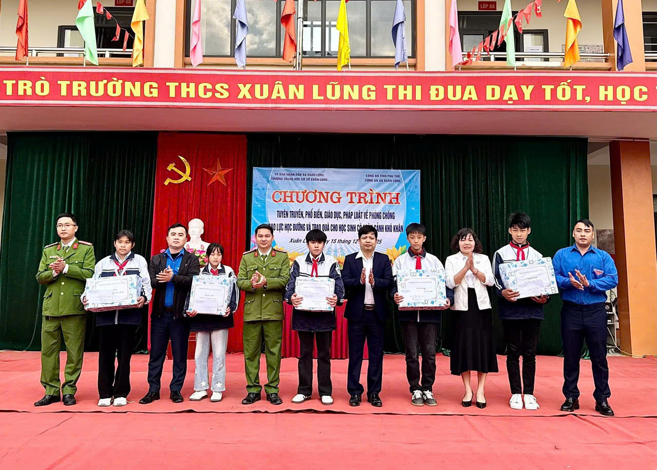 Công an xã Xuân Lũng đẩy mạnh tuyên truyền phòng, chống bạo lực học đường và tặng quà học sinh có hoàn cảnh khó khăn (15/12/2025)