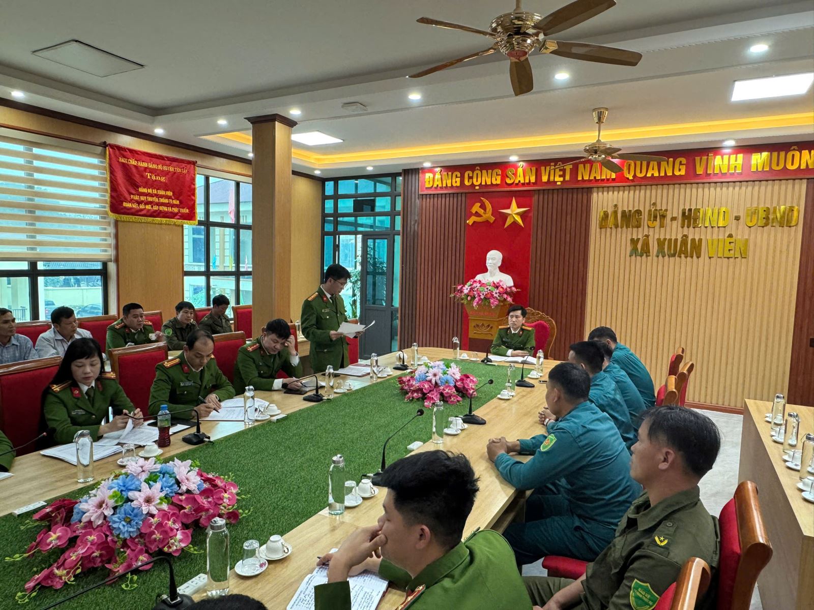 Tiếp tục triển khai các nhiệm vụ phục vụ công tác bầu cử, sáng ngày 12/3/2026, Công an xã Xuân Viên đã tổ chức Hội nghị triển khai, phân công nhiệm vụ cho các lực lượng tham gia bảo đảm an ninh trật tự phục vụ ngày bầu cử. Tham dự hội nghị có lãnh đạo, cán bộ, chiến sĩ Công an xã; lực lượng an ninh cơ sở; đại diện Ban Chỉ huy Quân sự xã, Trạm Y tế xã cùng cán bộ, chiến sĩ các phòng nghiệp vụ Công an tỉnh tăng cường hỗ trợ địa bàn.