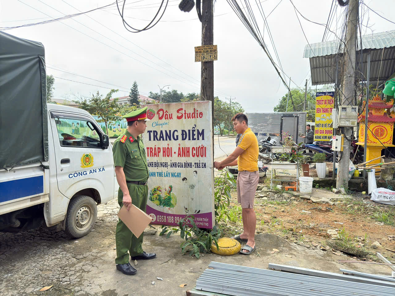 Công an xã Xuân Viên tăng cường quản lý, giải tỏa hành lang an toàn giao thông