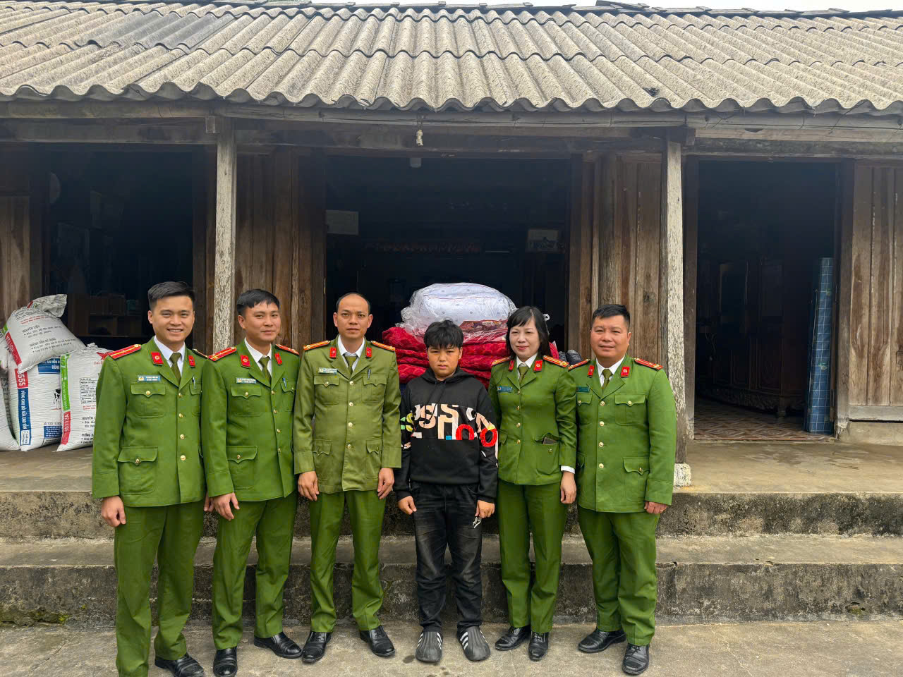 Trong những ngày đầu năm, cán bộ, chiến sĩ Công an xã đã đến thăm em Hưng và trao tặng chăn, đệm, giày ấm cùng các nhu yếu phẩm cần thiết cùng phần quà trị giá 1.500.000 đồng.