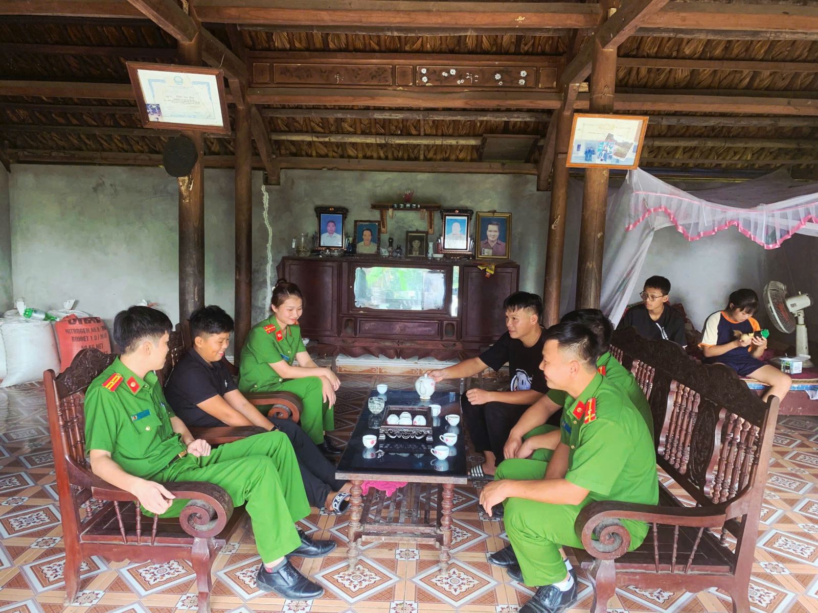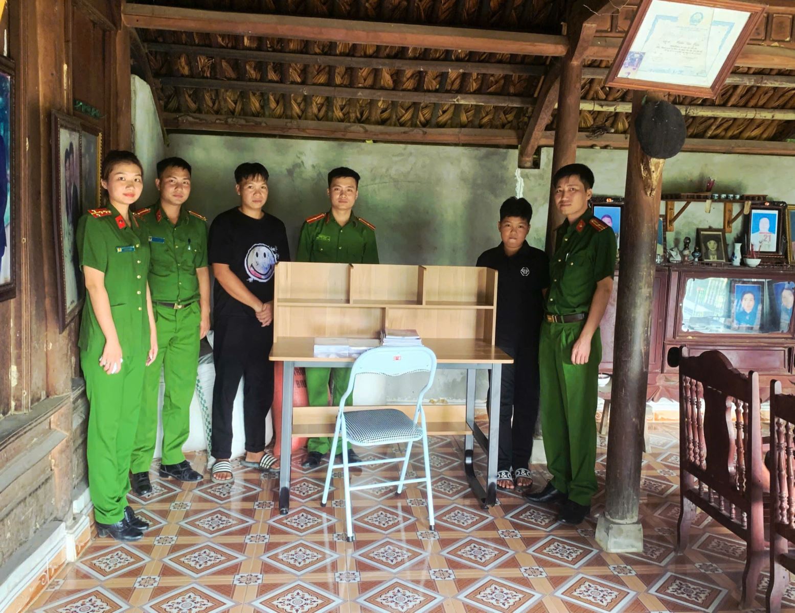 Tại buổi đến thăm, Công an xã cùng Chi đoàn Thanh niên đã ân cần thăm hỏi tình hình sức khỏe, học tập, đời sống của em; đồng thời động viên em tiếp tục nỗ lực vượt khó, chăm ngoan, học giỏi, rèn luyện đạo đức để trở thành công dân có ích. Nhân dịp này, Công an xã Xuân Viên đã trao tặng phần quà gồm sách vở, bàn học, đồ dùng học tập… trị giá 1.500.000 đồng.