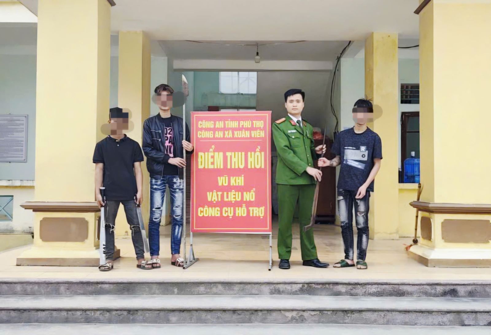 Công an xã Xuân Viên vận động thanh thiếu niên tự nguyện giao nộp hung khí tự chế