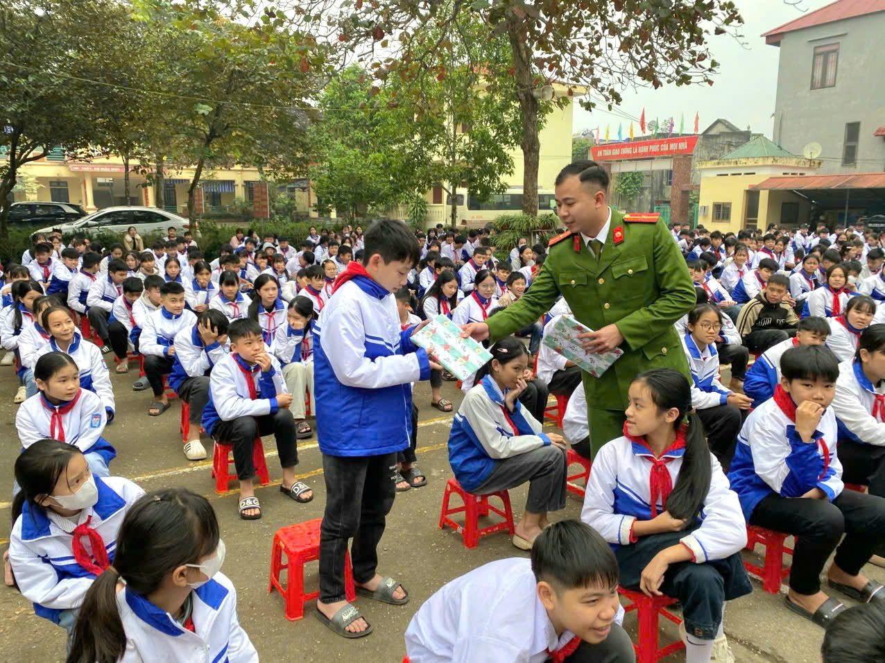 Nội dung tuyên truyền tập trung vào những vấn đề đang được xã hội quan tâm và có liên quan trực tiếp đến lứa tuổi học sinh như phòng, chống tệ nạn xã hội trong học đường, đặc biệt là ma túy, cờ bạc trên không gian mạng, tụ tập gây mất an ninh, trật tự; phòng, chống bạo lực học đường; kiến thức cơ bản về phòng cháy, chữa cháy và kỹ năng xử lý tình huống khi xảy ra sự cố. Bên cạnh đó, Công an xã chú trọng trang bị cho học sinh các kỹ năng sống cần thiết, định hướng lối sống lành mạnh, nâng cao ý thức trách nhiệm đối với bản thân, gia đình và xã hội; khuyến khích học sinh chủ động nói không với các hành vi vi phạm pháp luật.