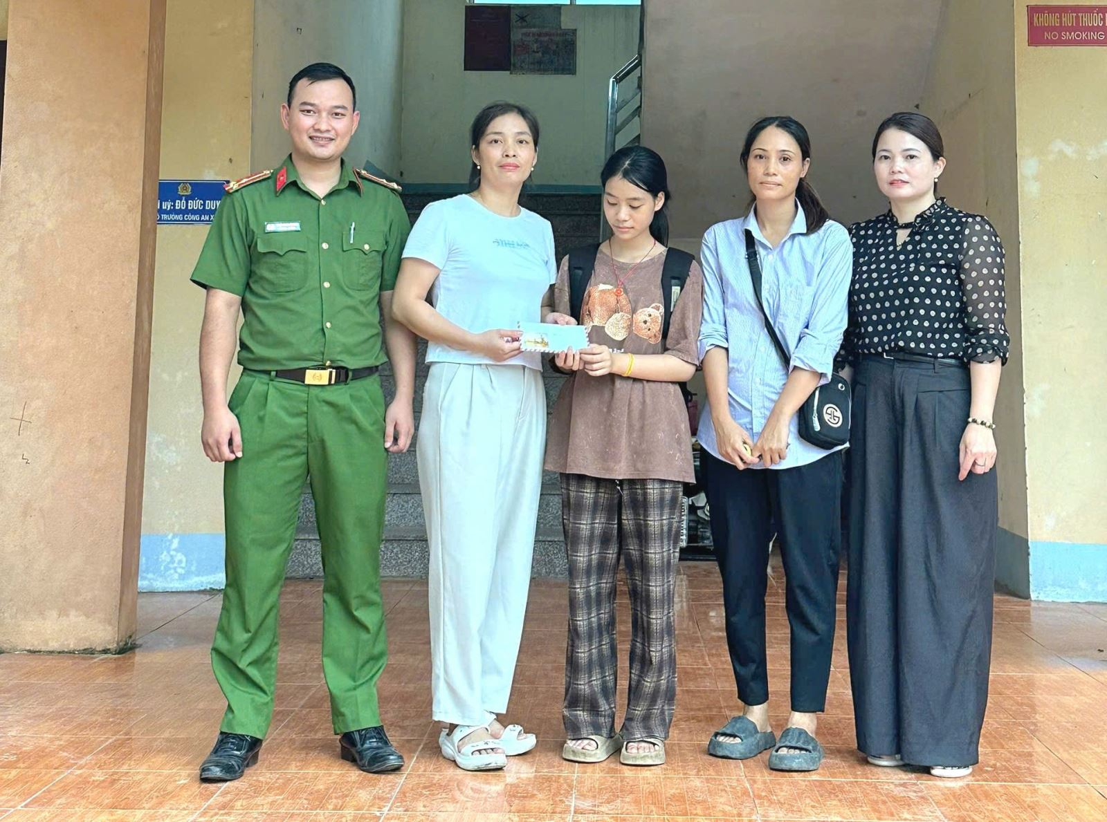 Công an xã Yên Kỳ hỗ trợ học sinh nhận lại tiền đánh rơi