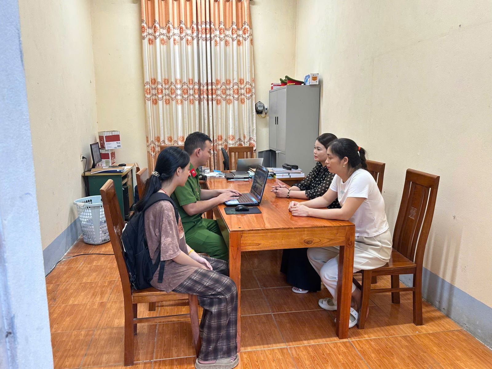 Khung cảnh buổi làm việc Tại buổi trao trả, cháu Nguyễn Minh Anh cho biết: Số tiền trong phong bì là quỹ lớp do các bạn học sinh đóng góp, dùng để mua sắm đồ dùng phục vụ hoạt động ngoại khóa. Khi làm rơi phong bì, cháu vô cùng hoang mang, lo lắng và đã báo lại với giáo viên chủ nhiệm để nhờ hỗ trợ tìm kiếm. Khi nhận lại được toàn bộ số tiền, cháu và gia đình bày tỏ niềm vui mừng, xúc động và gửi lời cảm ơn chân thành đến chị Tạ Thị Thanh Nga cùng Công an xã Yên Kỳ đã giúp đỡ, hỗ trợ tìm và trả lại số tiền một cách kịp thời.
