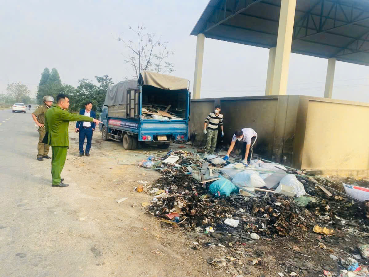 Công an xã Yên Lạc quyết liệt ngăn chặn, xử lý hành vi đổ trộm rác thải trái phép