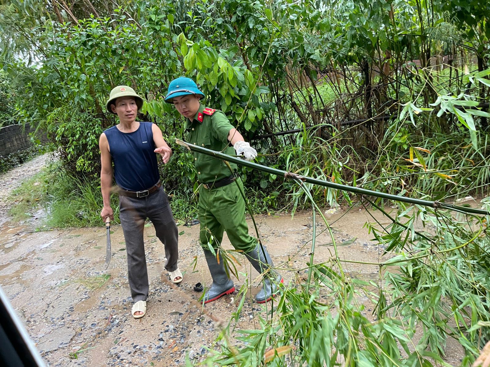 Công an xã Yên Lãng chủ động hỗ trợ người dân khắc phục hậu quả sau bão