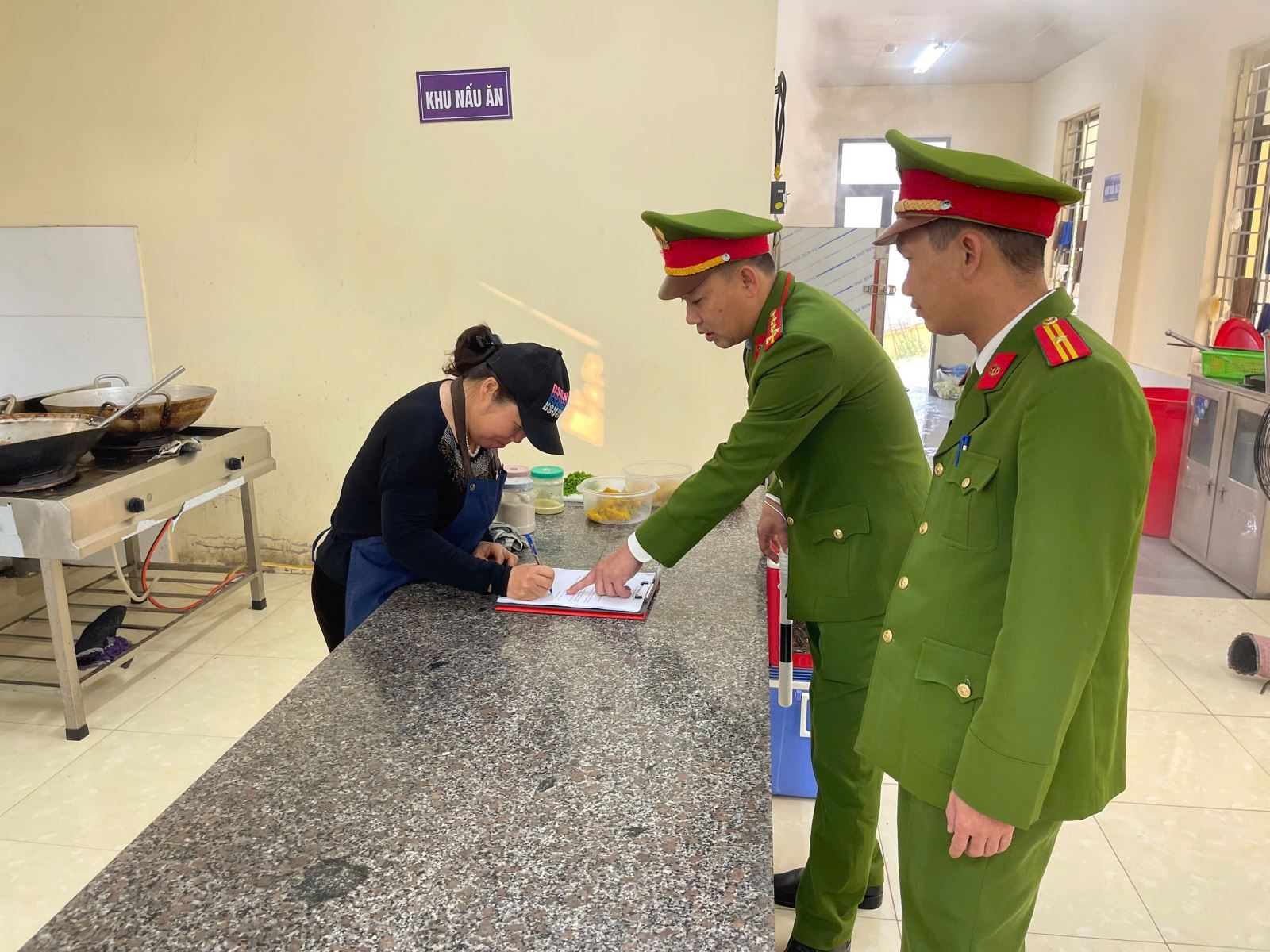 Công an xã Yên Lãng kiểm tra an toàn thực phẩm bếp ăn bán trú trường học