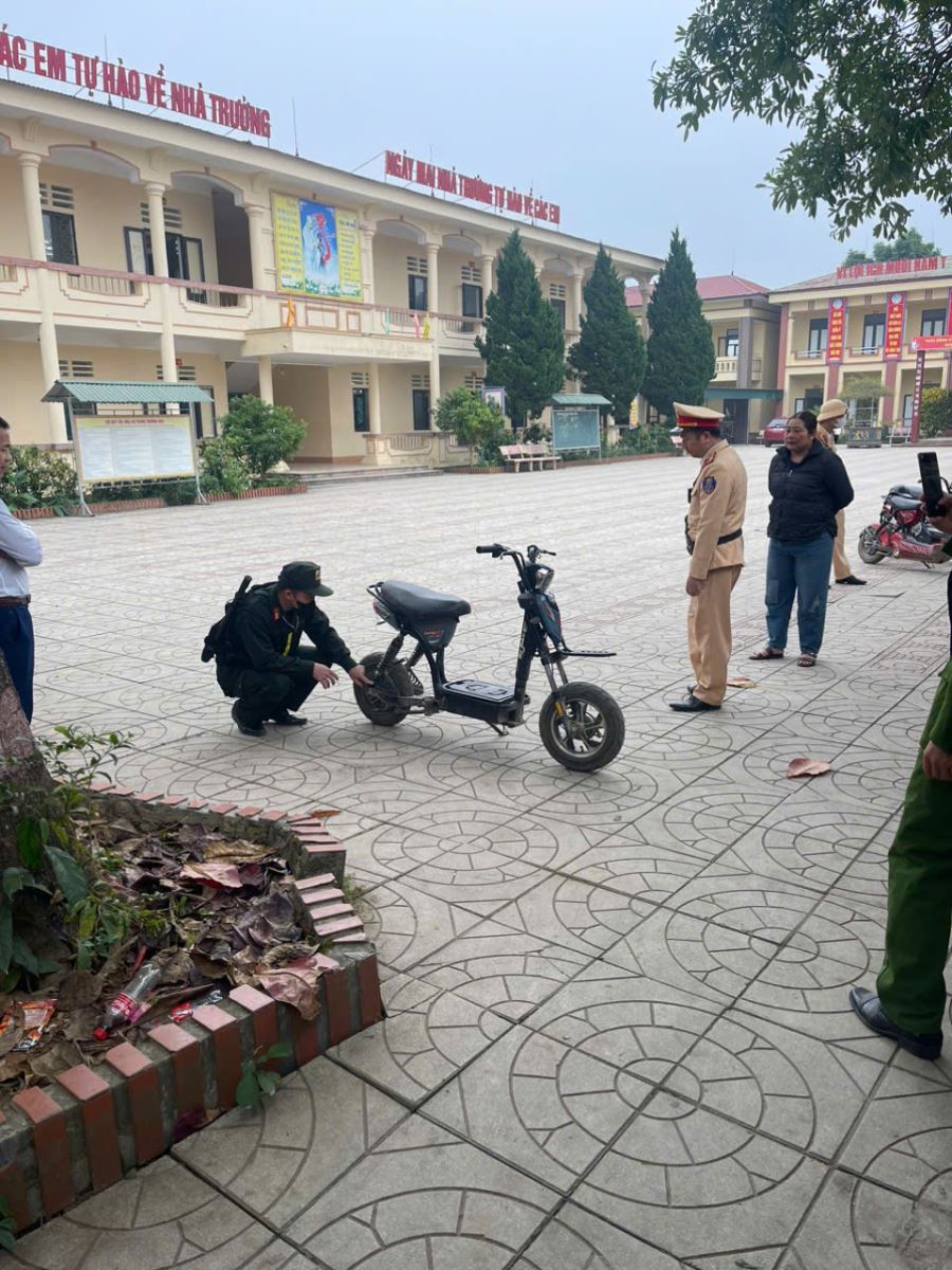 Song song với công tác tuyên truyền, lực lượng Công an xã và Phòng Cảnh sát giao thông đã tiến hành kiểm tra thực tế phương tiện của học sinh. Nội dung kiểm tra tập trung vào tình trạng độ, chế xe mô tô, xe gắn máy, xe đạp điện như thay đổi ống xả, thay đổi hệ thống đèn, gương chiếu hậu, kết cấu khung xe, lắp đặt các thiết bị không đúng quy định. Qua kiểm tra, đa số học sinh chấp hành nghiêm các quy định của pháp luật về trật tự an toàn giao thông; tuy nhiên, vẫn còn một số trường hợp vi phạm, chủ yếu là chưa đội mũ bảo hiểm đúng quy cách, phương tiện thiếu gương chiếu hậu hoặc có dấu hiệu thay đổi một số chi tiết không đúng quy định.