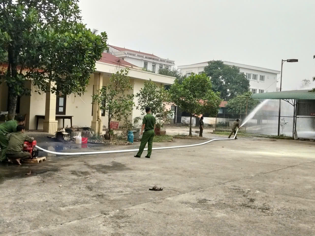 Công an xã Yên Lập tổ chức huấn luyện nghiệp vụ và trải nghiệm kỹ năng phòng cháy, chữa cháy