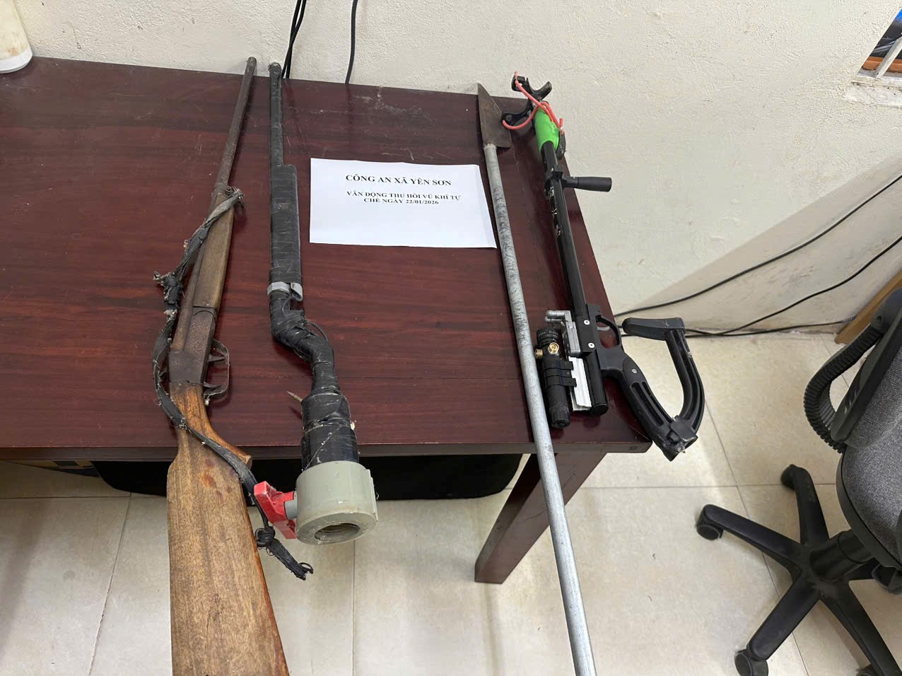 Qua công tác vận động, nhiều người dân trên địa bàn xã Yên Sơn đã tự giác giao nộp các loại vũ khí tự chế và công cụ có tính sát thương cao. Cụ thể, Công an xã đã tiếp nhận 01 khẩu súng kíp tự chế, 01 khẩu súng cồn tự chế, 01 phóng lợn và 01 ná cao su bắn đạn bi sắt. Toàn bộ số vũ khí, công cụ nêu trên đều được tiếp nhận, lập biên bản, quản lý chặt chẽ và xử lý theo đúng quy định của pháp luật, bảo đảm an toàn tuyệt đối.