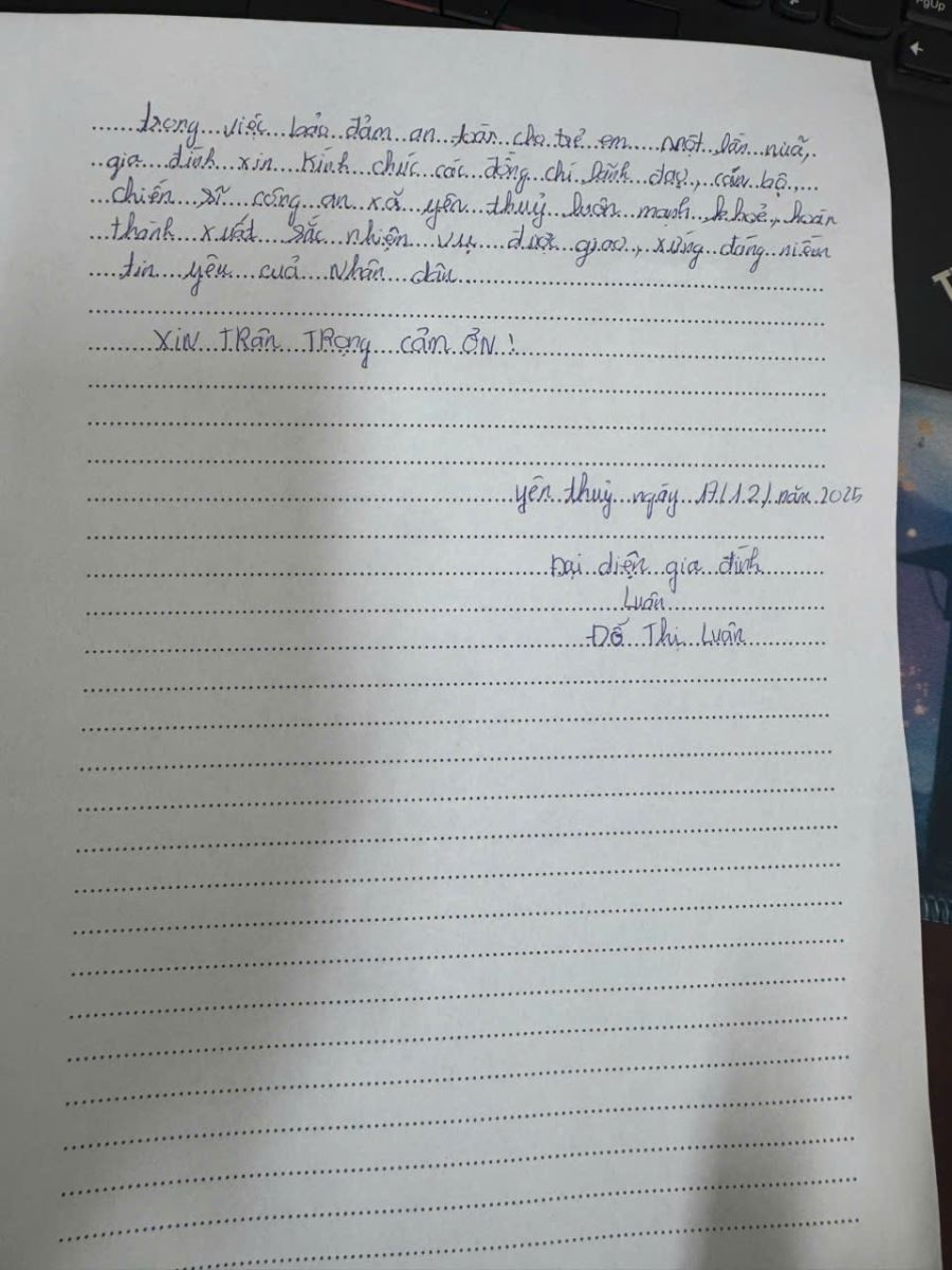 Đến ngày 16/12/2025, cháu Bùi Văn Hoàng được đưa trở về và bàn giao an toàn cho gia đình trong tình trạng sức khỏe ổn định. Gia đình bà Triệu Thị Phượng bày tỏ sự xúc động, gửi lời cảm ơn tới Công an xã Yên Thủy và các lực lượng liên quan đã quan tâm, hỗ trợ kịp thời, giúp gia đình sớm đoàn tụ, ổn định cuộc sống.