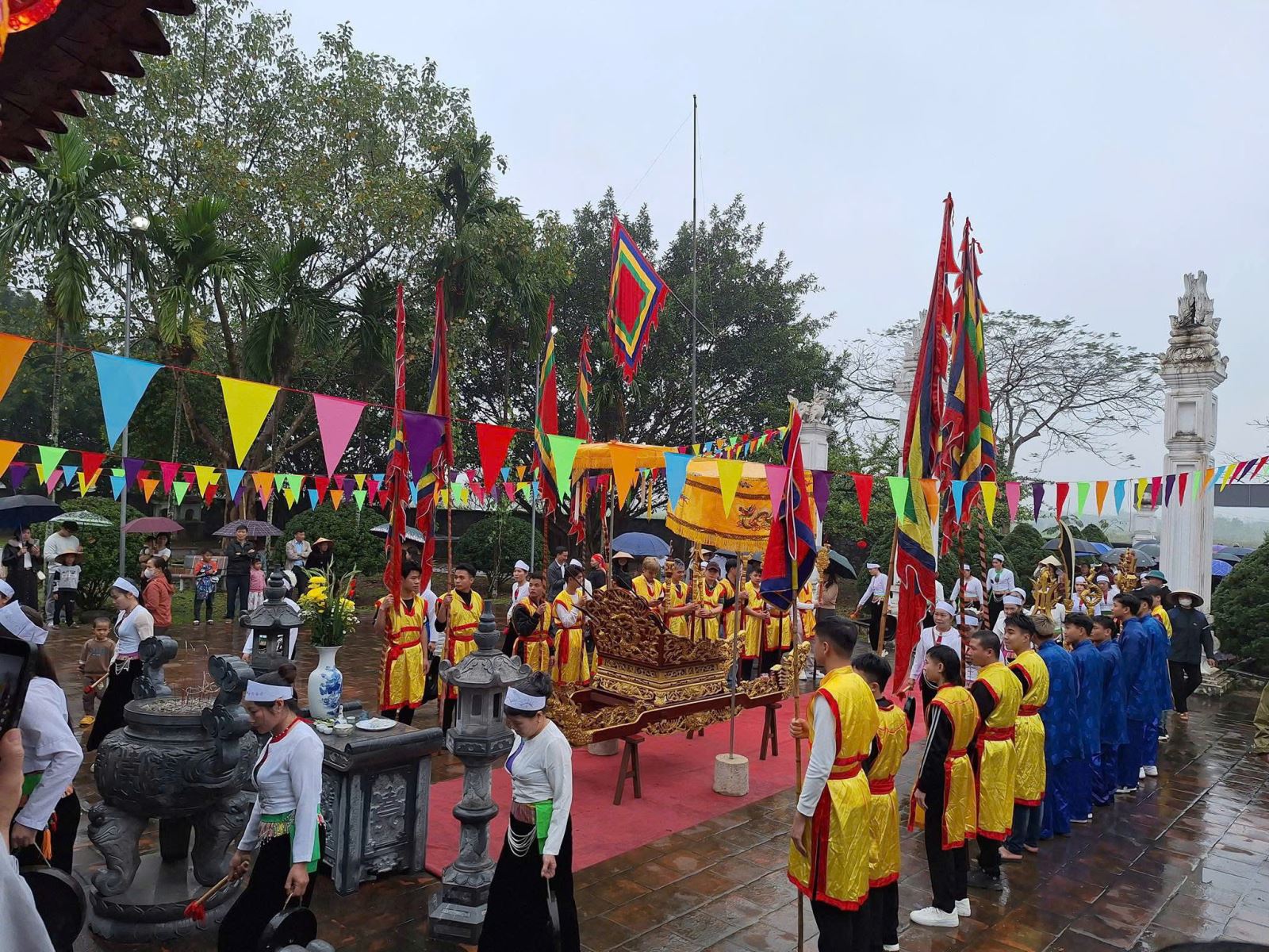 Về trật tự an toàn giao thông, Công an xã đã tổ chức phân luồng, điều tiết các phương tiện từ xa, không để xảy ra tình trạng ùn tắc cục bộ tại cổng đình. Các điểm trông giữ xe được sắp xếp trật tự, có sự giám sát chặt chẽ, đảm bảo không để xảy ra tình trạng lấn chiếm lòng lề đường hay thu phí không đúng quy định.