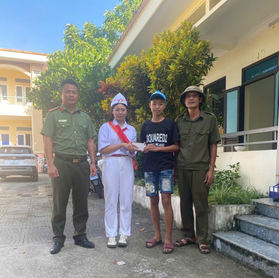 Cán bộ Công an xã Yên Trị hỗ trợ tìm kiếm đồ thất lạc tại Hội trại Trung thu