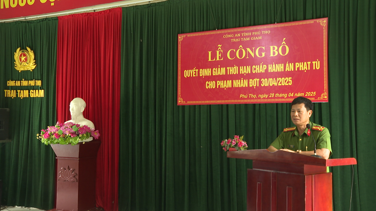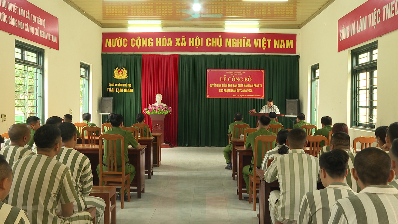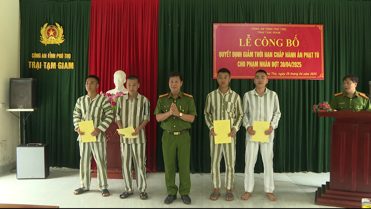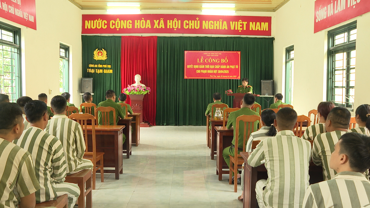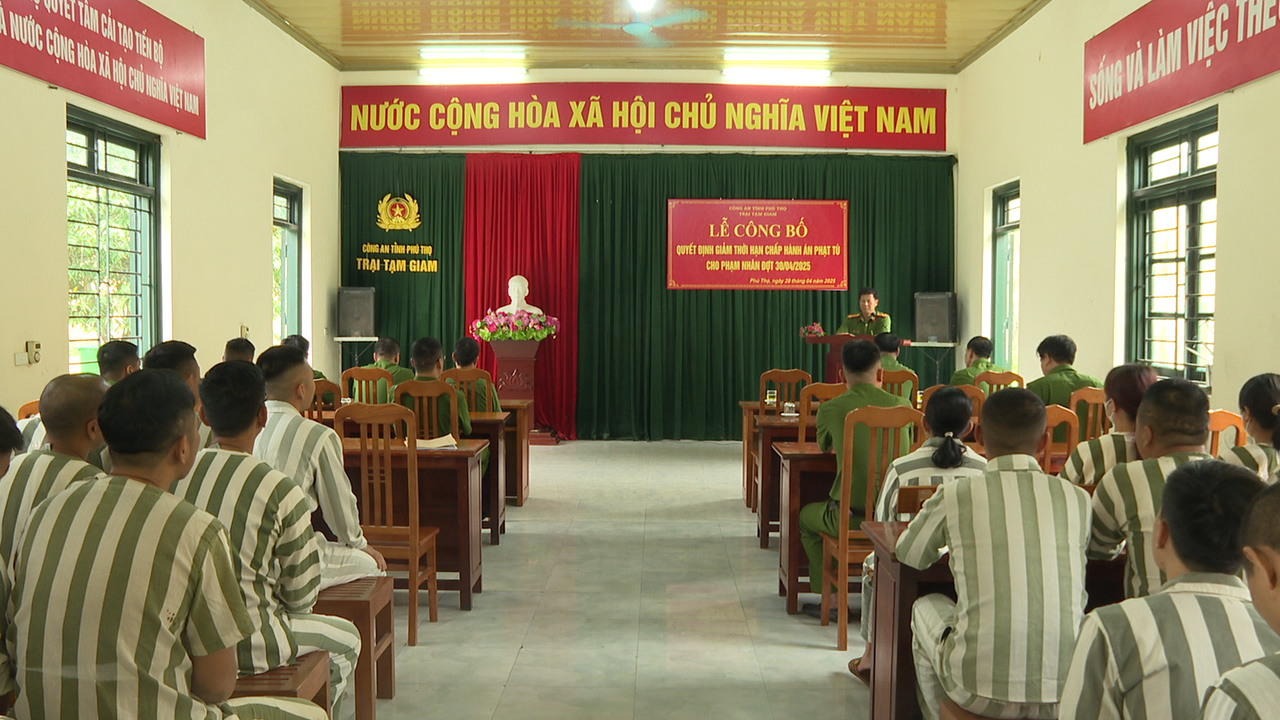 Ngày 28/4/2025, Trại tạm giam Công an tỉnh Phú Thọ đã tổ chức Lễ công bố các quyết định giảm thời hạn chấp hành án phạt tù đợt 30/4 cho các phạm nhân đang chấp hành án tại Trại tạm giam.