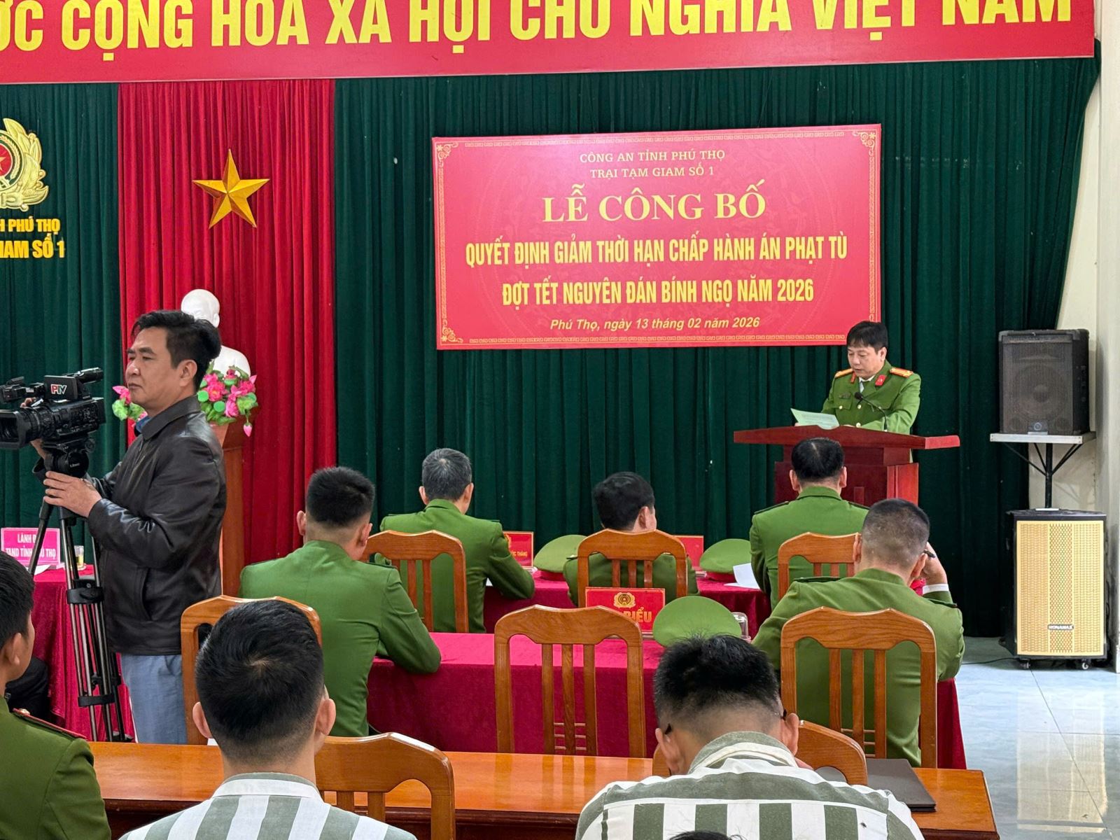 Nhân dịp Tết Nguyên đán Bính Ngọ năm 2026, sáng ngày 13/02/2026, Trại tạm giam số 1 - Công an tỉnh Phú Thọ đã tổ chức Lễ công bố quyết định giảm thời hạn chấp hành án phạt tù cho các phạm nhân đang cải tạo tại đơn vị. Hoạt động được thực hiện theo quy định của pháp luật, thể hiện chính sách nhân đạo, khoan hồng của Đảng và Nhà nước đối với người chấp hành án có quá trình cải tạo tiến bộ.