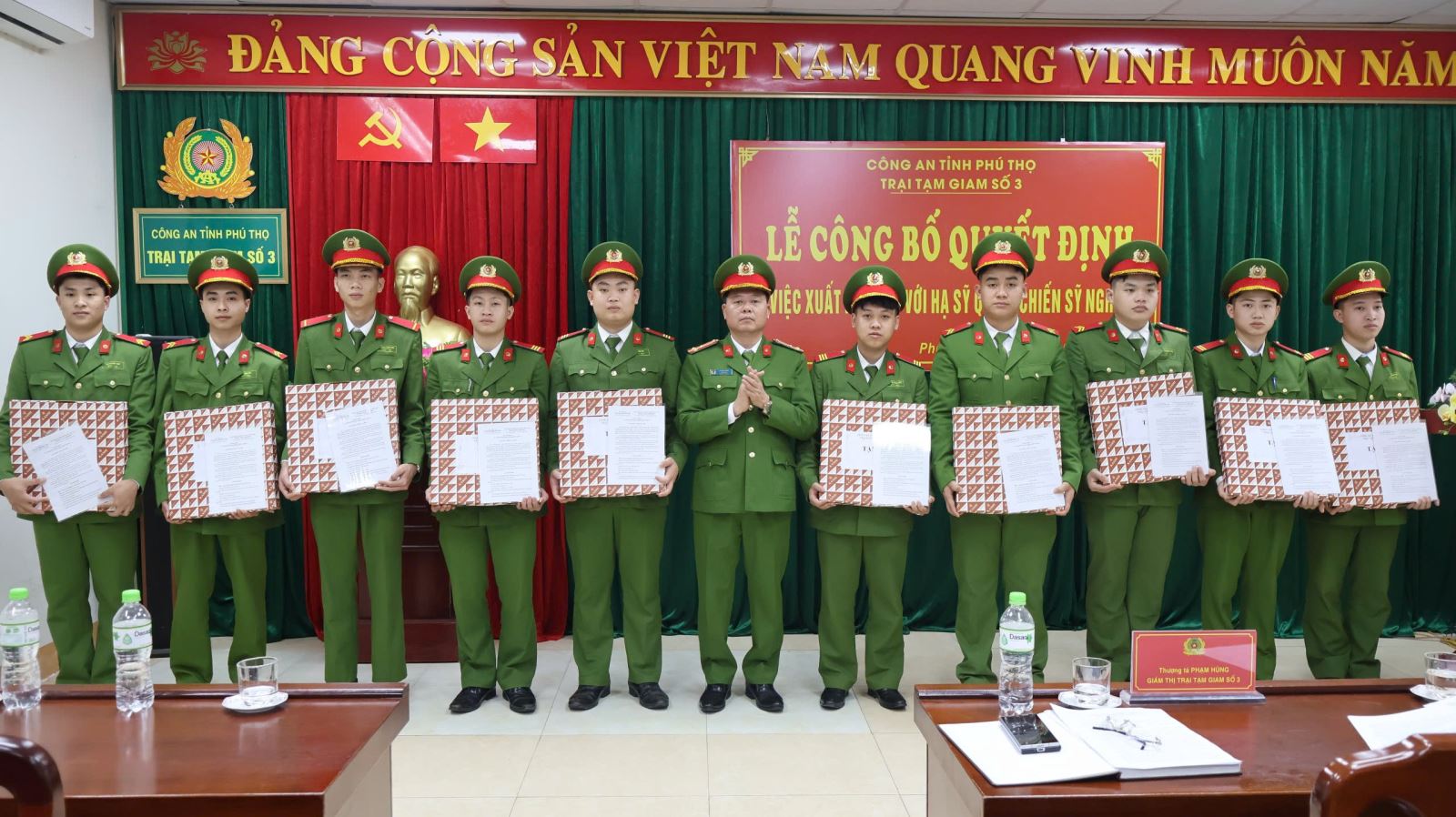 Chiều 25/2/2026, Trại tạm giam số 3 Công an tỉnh Phú Thọ tổ chức Lễ công bố quyết định xuất ngũ đối với hạ sĩ quan, chiến sĩ nghĩa vụ hết thời hạn phục vụ tại ngũ năm 2026. Buổi lễ có sự tham dự của Ban Giám thị, chỉ huy các đội nghiệp vụ, đại diện các tổ chức đoàn thể và 40 chiến sĩ nghĩa vụ. Phạm Hùng, Giám thị Trại tạm giam số 3, dự và chủ trì buổi lễ.