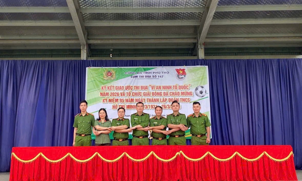 Sáng 22/3/2026, tại xã Thượng Cốc, Cụm thi đua số 147 Công an tỉnh Phú Thọ (gồm Công an các xã Nhân Nghĩa, Toàn Thắng, Mường Hoa, Ngọc Sơn, Mường Vang, Vân Sơn, Thượng Cốc) tổ chức Lễ ký kết giao ước thi đua “Vì an ninh Tổ quốc” năm 2026 và khai mạc giải bóng đá chào mừng kỷ niệm 95 năm Ngày thành lập Đoàn TNCS Hồ Chí Minh (26/3/1931 - 26/3/2026). Chương trình góp phần tạo khí thế thi đua sôi nổi, tăng cường đoàn kết, giao lưu, học hỏi, quyết tâm hoàn thành thắng lợi các nhiệm vụ công tác ngay từ đầu năm.