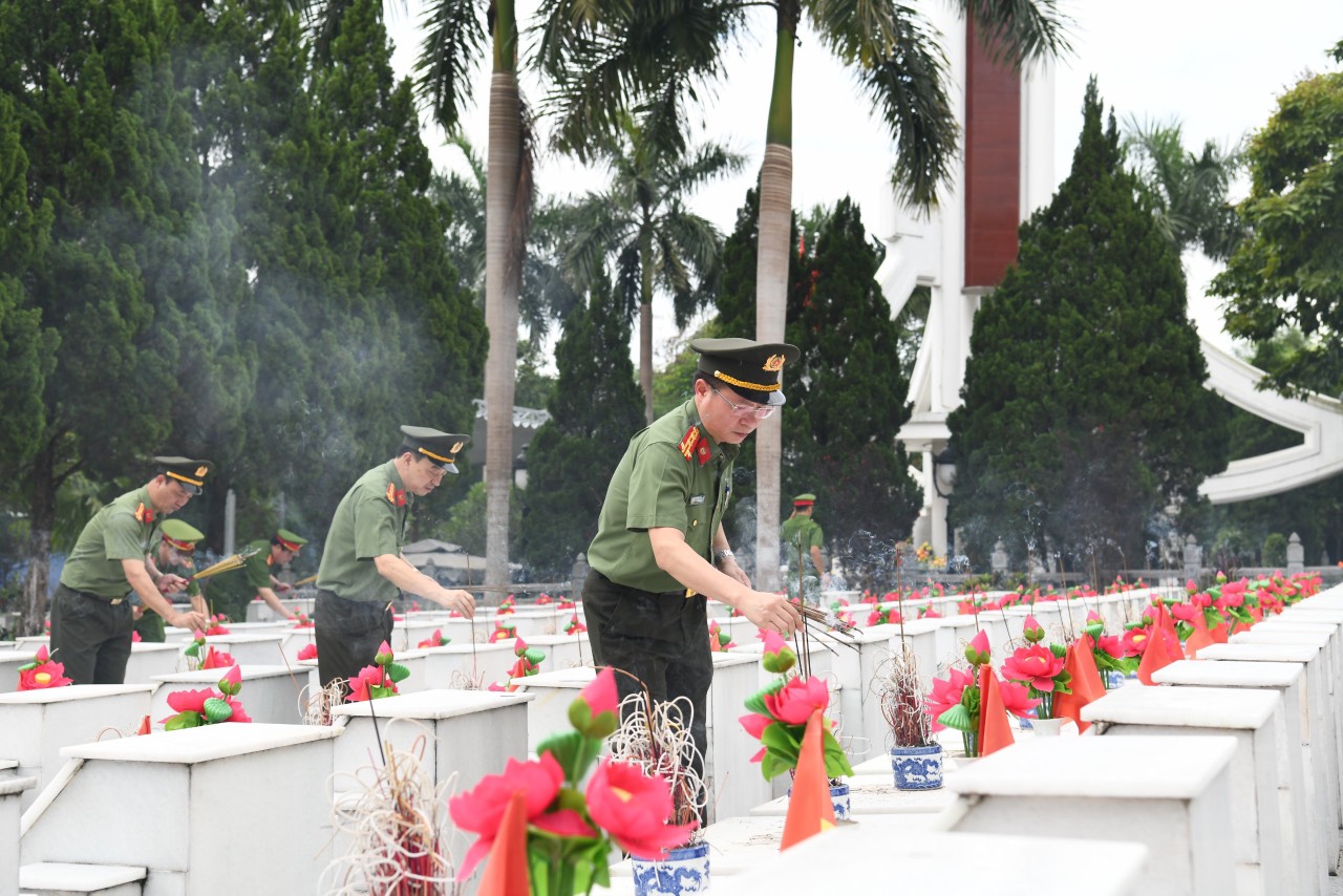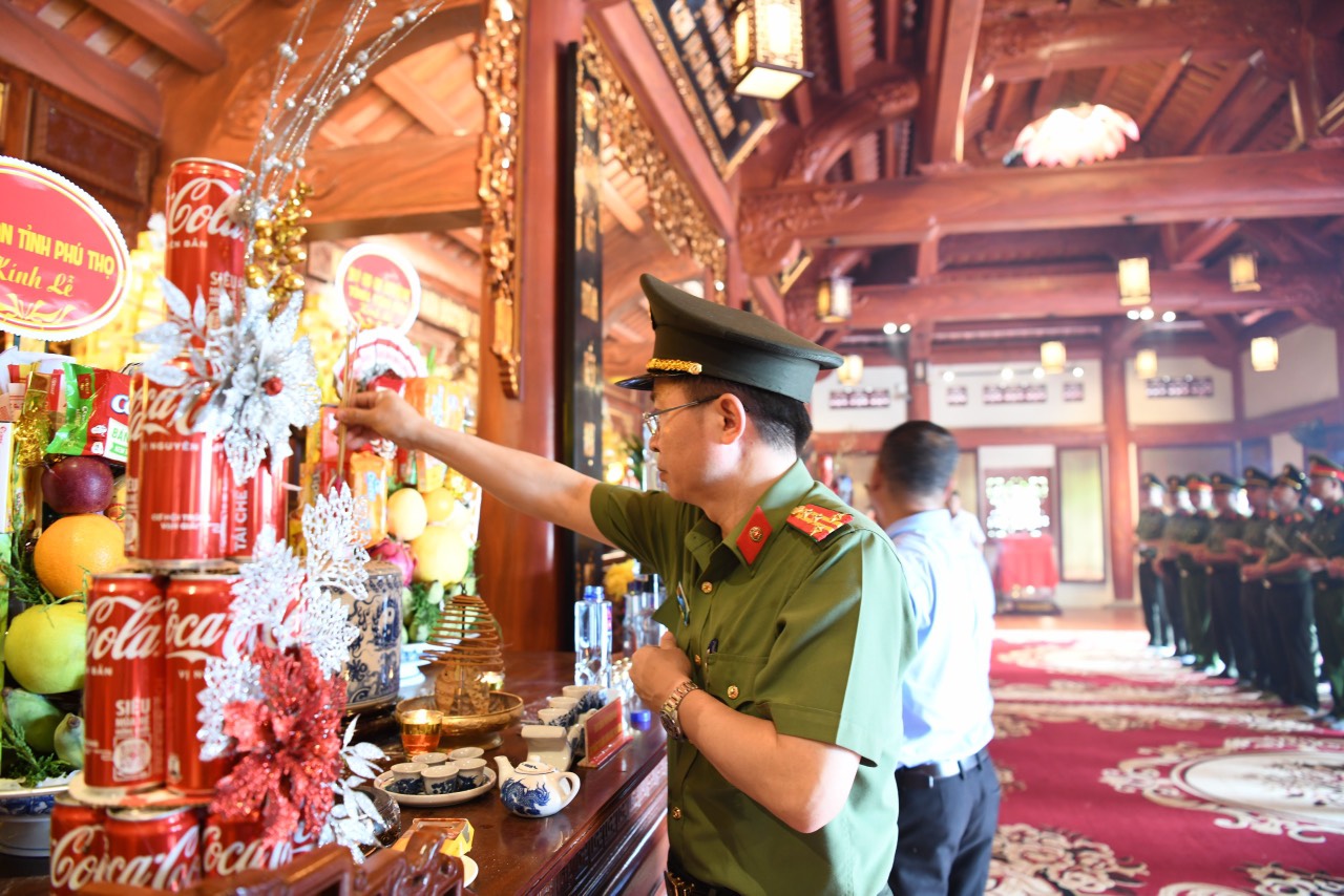 Tại nghĩa trang liệt sĩ Quốc gia Vị Xuyên, tỉnh Hà Giang, trong không khí trang nghiêm, thành kính, Đại tá Nguyễn Minh Tuấn, Giám đốc Công an tỉnh Phú Thọ đã thành kính dâng hoa, thắp hương tưởng nhớ, tri ân các Anh hùng Liệt sỹ đã không tiếc máu xương, anh dũng hy sinh cho sự nghiệp giải phóng dân tộc, bảo vệ toàn vẹn lãnh thổ của Tổ quốc, vì cuộc sống bình yên và hạnh phúc của Nhân dân.