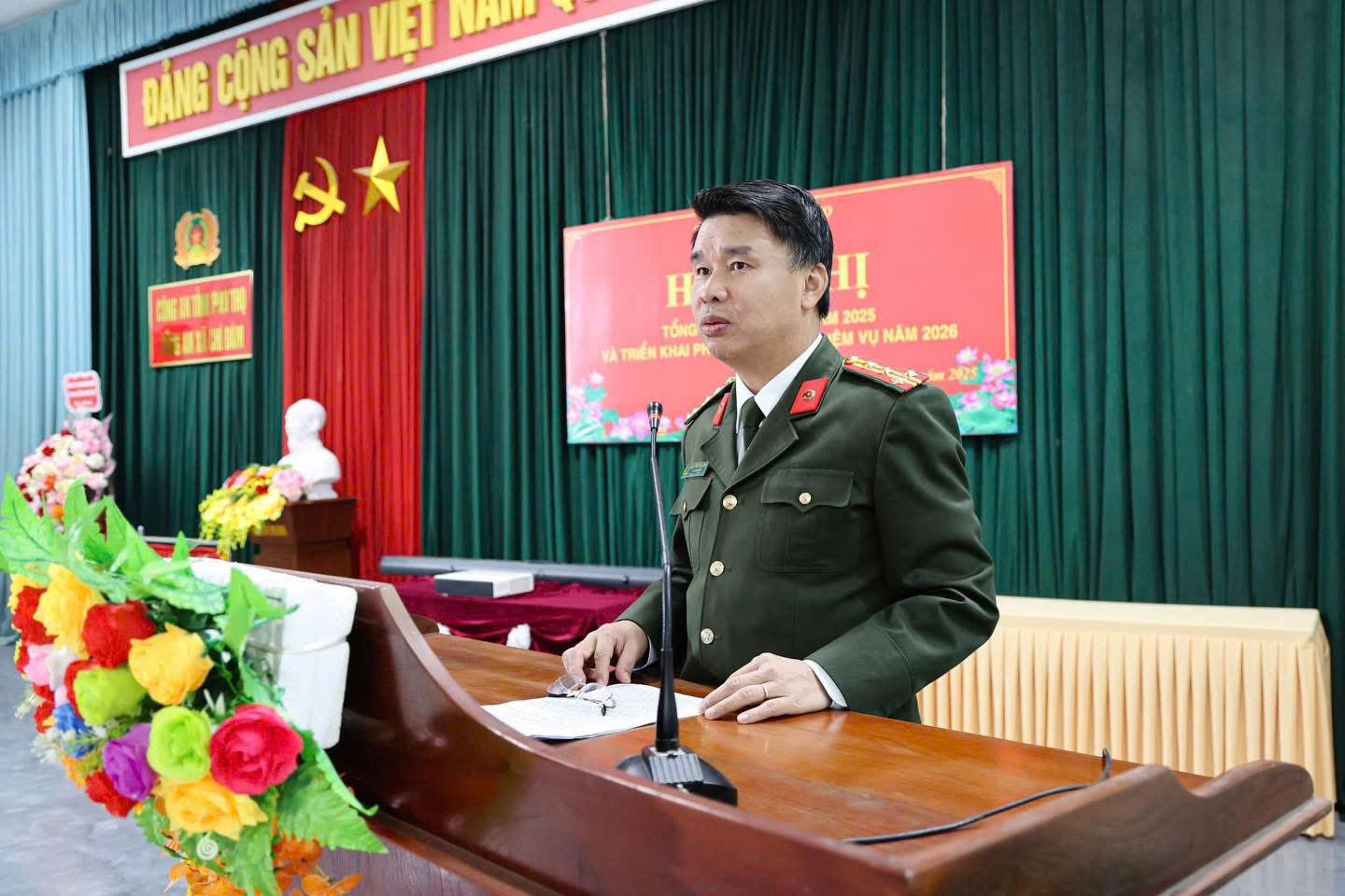 Đại tá Nguyễn Văn Công dự và chỉ đạo Hội nghị tổng kết công tác năm 2025 của Công an xã Chí Đám, tỉnh Phú Thọ (30/12/2025)