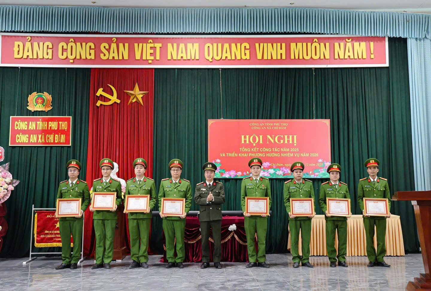 Với những kết quả nổi bật trong năm 2025, Công an xã Chí Đám vinh dự được Bộ Công an tặng Cờ thi đua; có 08 cá nhân được công nhận danh hiệu “Chiến sĩ thi đua cơ sở” và 05 cá nhân có thành tích xuất sắc trong phong trào thi đua của địa phương được Chủ tịch Ủy ban nhân dân xã tặng Giấy khen.