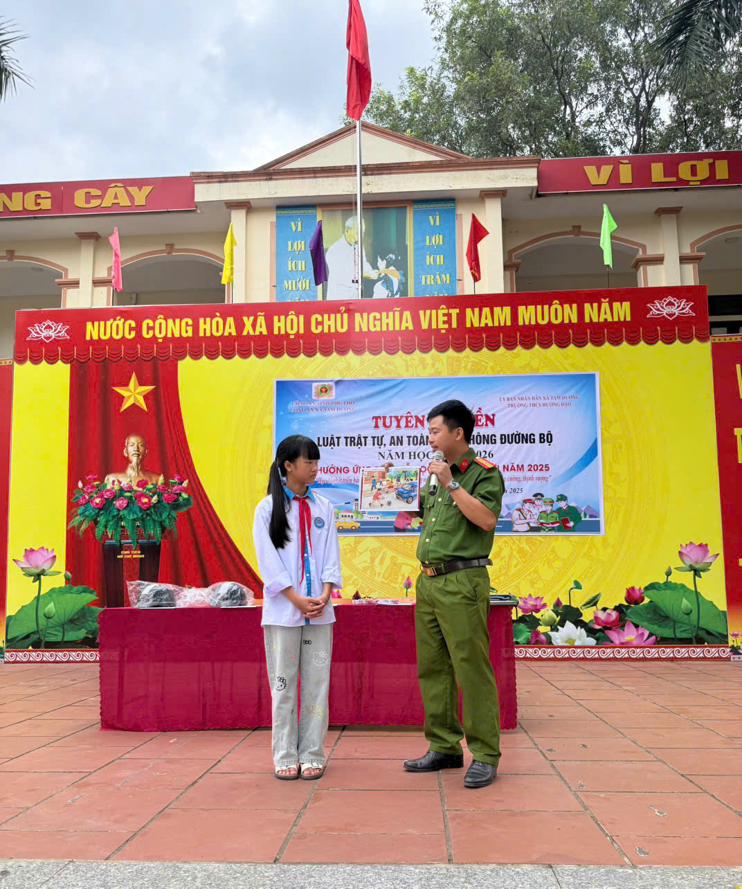 Bên cạnh công tác trực tiếp hướng dẫn, lực lượng Công an xã còn đẩy mạnh tuyên truyền trong các buổi sinh hoạt đầu tuần, các hoạt động ngoại khóa với nội dung phong phú như: “Văn hóa giao thông học đường”, đội mũ bảo hiểm khi đi xe đạp điện, xe máy điện, tuân thủ quy định khi tham gia giao thông. Những nội dung này được triển khai bằng hình thức sinh động, dễ hiểu, giúp học sinh nắm bắt và tự giác thực hiện.
