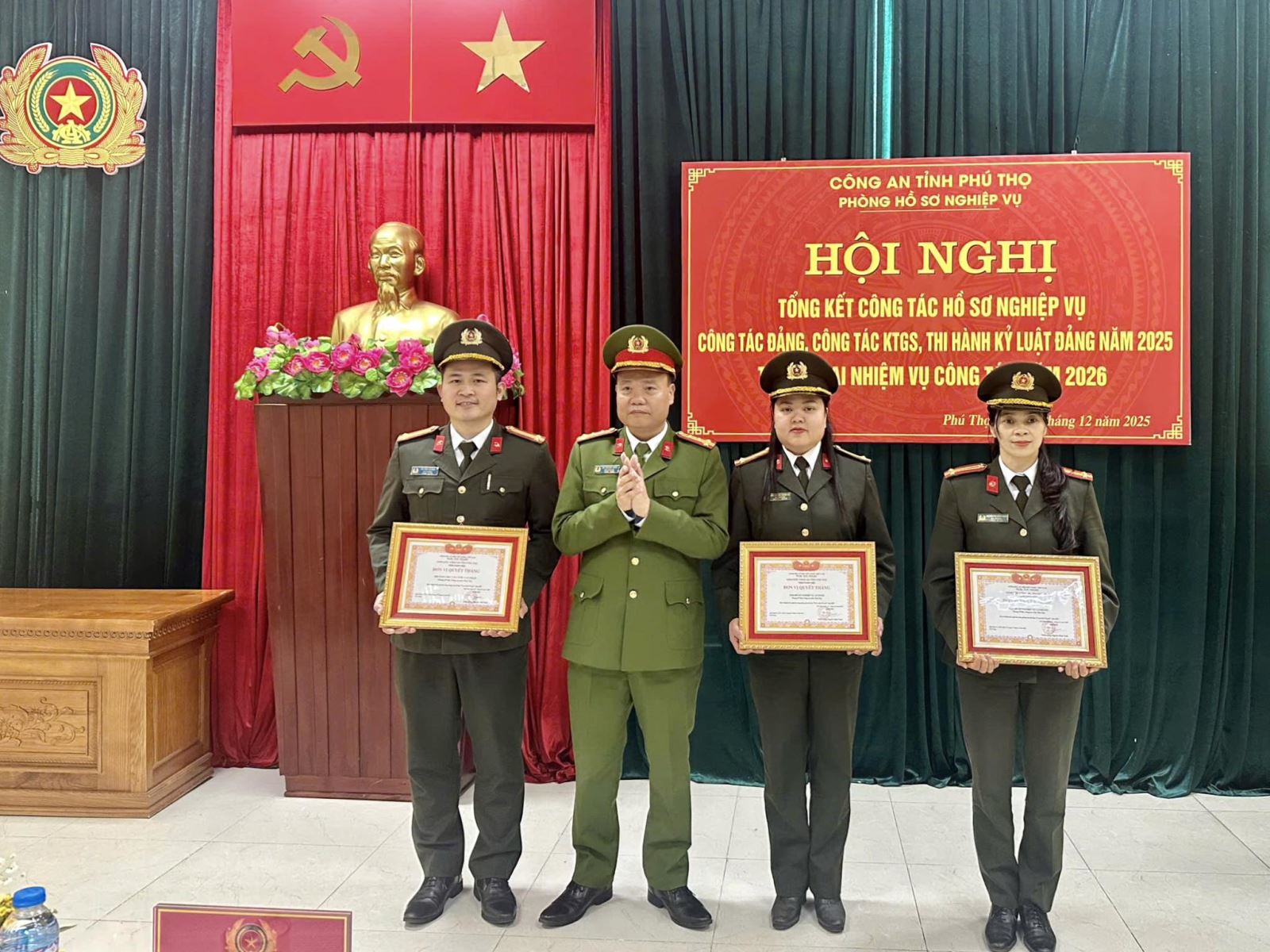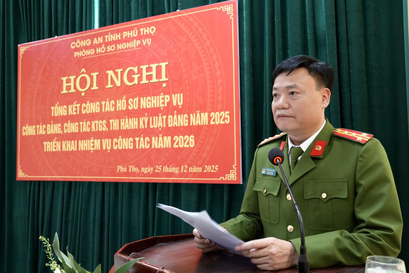 Ngày 25/12/2025, Đảng bộ Phòng Hồ sơ nghiệp vụ Công an tỉnh Phú Thọ tổ chức Hội nghị tổng kết công tác xây dựng Đảng, công tác kiểm tra, giám sát và thi hành kỷ luật Đảng năm 2025; triển khai nhiệm vụ công tác năm 2026.