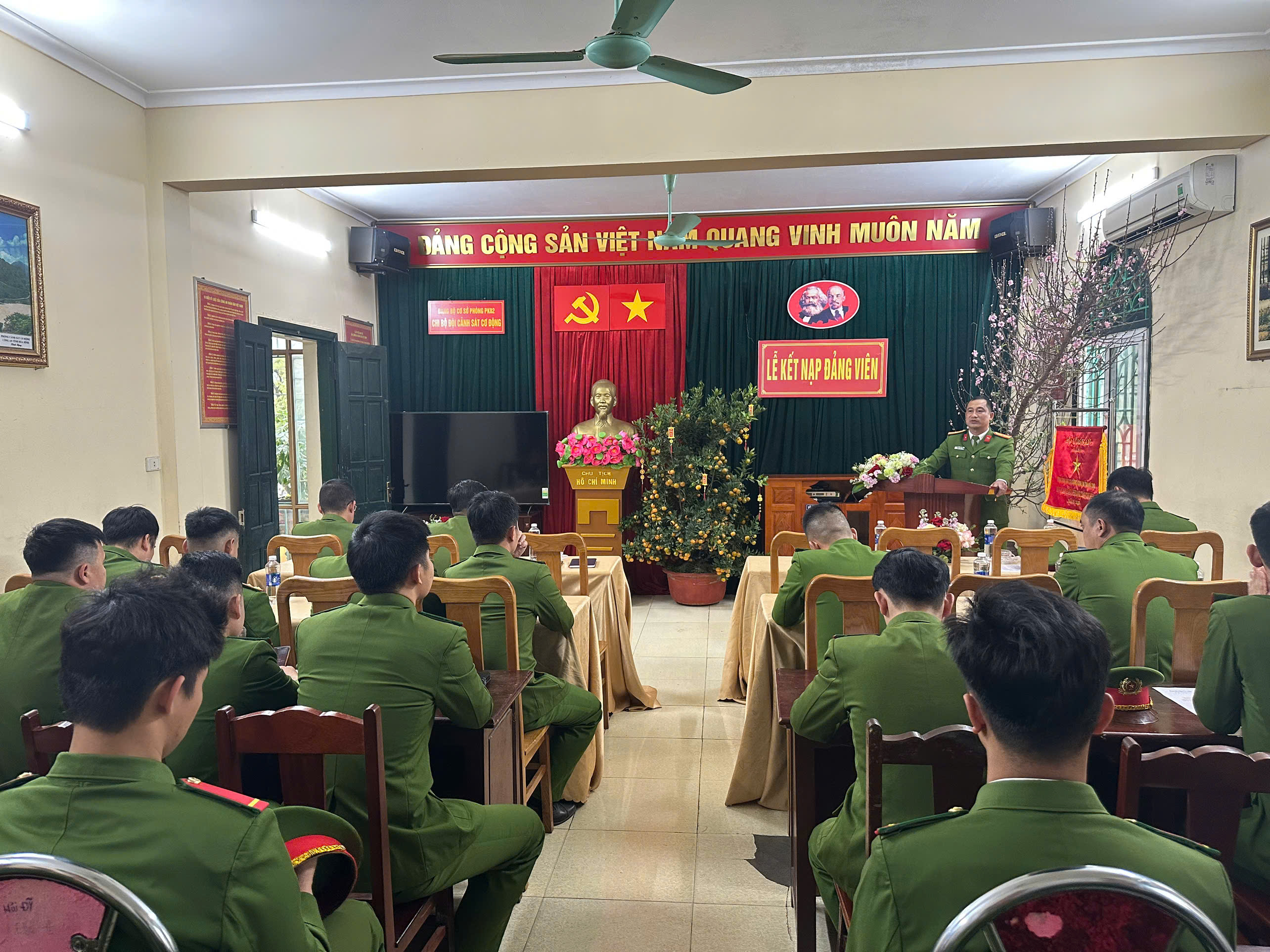 Đảng uỷ Phòng Cảnh sát cơ động, Công an tỉnh Phú Thọ tổ chức lễ kết nạp Đảng cho 57 chiến sĩ nghĩa vụ Tham dự buổi lễ có đồng chí Thượng tá Nguyễn Tân Dân, Phó Bí thư Đảng uỷ Phòng Cảnh sát cơ động; đại diện lãnh đạo đơn vị cùng toàn thể đảng viên và quần chúng ưu tú. Tại buổi lễ, đồng chí Phó Bí thư Đảng uỷ Phòng Cảnh sát cơ động đã trao Quyết định kết nạp Đảng và chúc mừng các đảng viên mới. Đồng chí nhấn mạnh: Việc đứng trong hàng ngũ của Đảng là niềm vinh dự, tự hào lớn lao, đồng thời cũng là trách nhiệm nặng nề. Các đồng chí đảng viên mới cần tiếp tục nỗ lực rèn luyện, giữ gìn phẩm chất đạo đức cách mạng, phát huy vai trò tiền phong, gương mẫu của người đảng viên trong mọi hoàn cảnh, dù tiếp tục công tác trong lực lượng hay trở về địa phương.