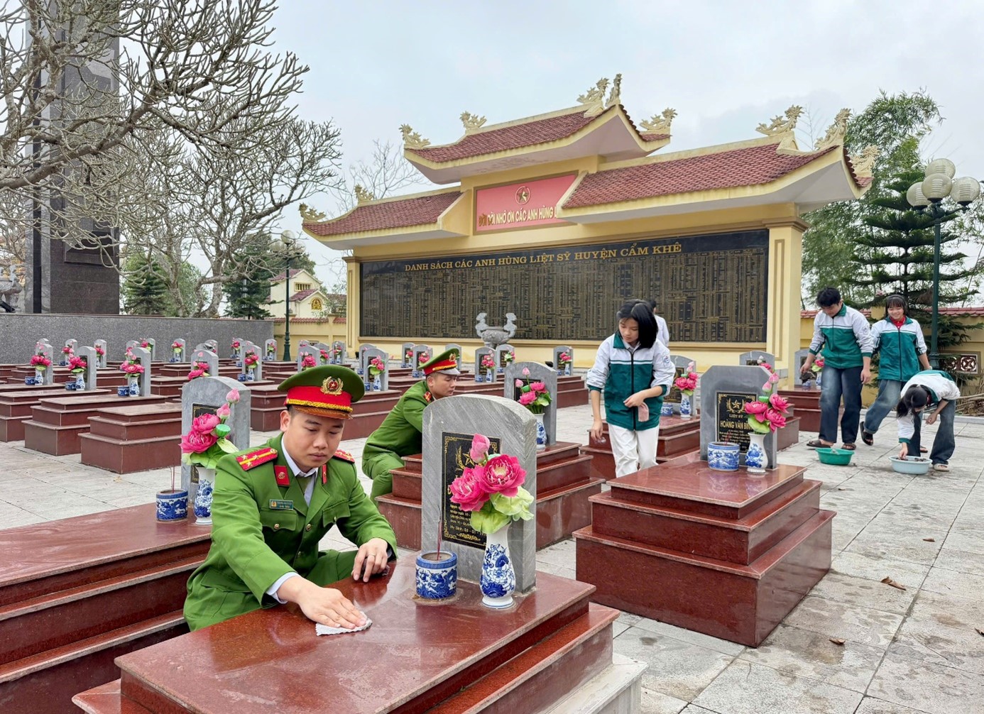 Nhân dịp đầu Xuân 2026, Chi đoàn Công an xã Cẩm Khê đã phối hợp với Đoàn Trường THCS Sông Thao và Đoàn Trường THPT Cẩm Khê tổ chức ra quân dọn dẹp vệ sinh và dâng hương tại Nghĩa trang liệt sỹ xã Cẩm Khê, thể hiện đạo lý “Uống nước nhớ nguồn”, tri ân các anh hùng liệt sỹ.