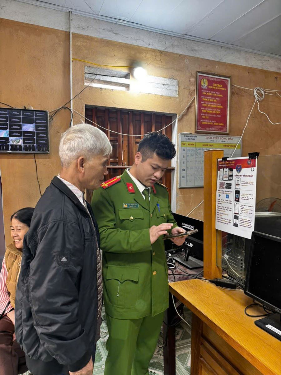 Trong quá trình tiếp nhận, giải quyết hồ sơ, đoàn viên thanh niên Công an xã đã tận tình hướng dẫn người dân cài đặt, sử dụng ứng dụng định danh điện tử, ứng dụng VNeTraffic, đồng thời hỗ trợ tích hợp các loại giấy tờ như đăng ký xe, bảo hiểm, thông tin an sinh xã hội. Đối với các trường hợp chưa nắm rõ quy trình hoặc hồ sơ còn thiếu, cán bộ trực tiếp hướng dẫn, giải thích cụ thể để công dân hoàn thiện ngay từ lần đầu, hạn chế việc đi lại nhiều lần, đặc biệt đối với người dân ở xa trung tâm.