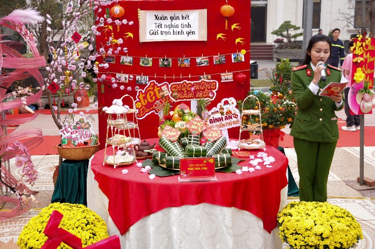 Chương trình Hội thi năm nay được lồng ghép thi gói bánh chưng và trưng bày gian hàng Tết với sự tham gia của 10 Đội thi đấu từ Công an các đơn vị Khối Phòng thuộc Công an tỉnh. Mỗi gian hàng được trang trí công phu, chỉn chu, tái hiện sinh động không gian Tết truyền thống thông qua những thức quà quen thuộc, dân dã như bánh chưng xanh, mứt Tết, bánh kẹo, trà xuân, hoa đào, câu đối đỏ… Tất cả được sắp đặt hài hòa, tinh tế, gửi gắm tình cảm, sự sáng tạo và tâm huyết của CBCS Công an tỉnh Phú Thọ.