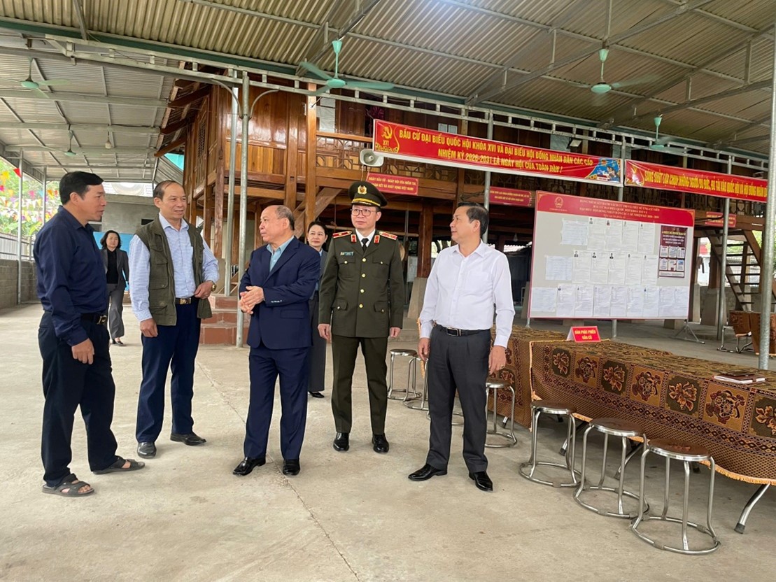 Đoàn công tác kiểm tra thực tế tại khu vực bỏ phiếu số 01, xã Mai Hạ Bên cạnh đó, Giám đốc Công an tỉnh chỉ đạo cần tăng cường quản lý cư trú, rà soát dữ liệu cử tri và đẩy mạnh tuyên truyền, vận động Nhân dân chấp hành pháp luật về bầu cử. Đồng chí lưu ý lực lượng chức năng cần chủ động đấu tranh với các thông tin sai sự thật trên không gian mạng nhằm hạ uy tín cuộc bầu cử; đồng thời tăng cường tuần tra, kiểm soát và hướng dẫn khai báo lưu trú cho người nước ngoài tại các điểm du lịch trên địa bàn xã.