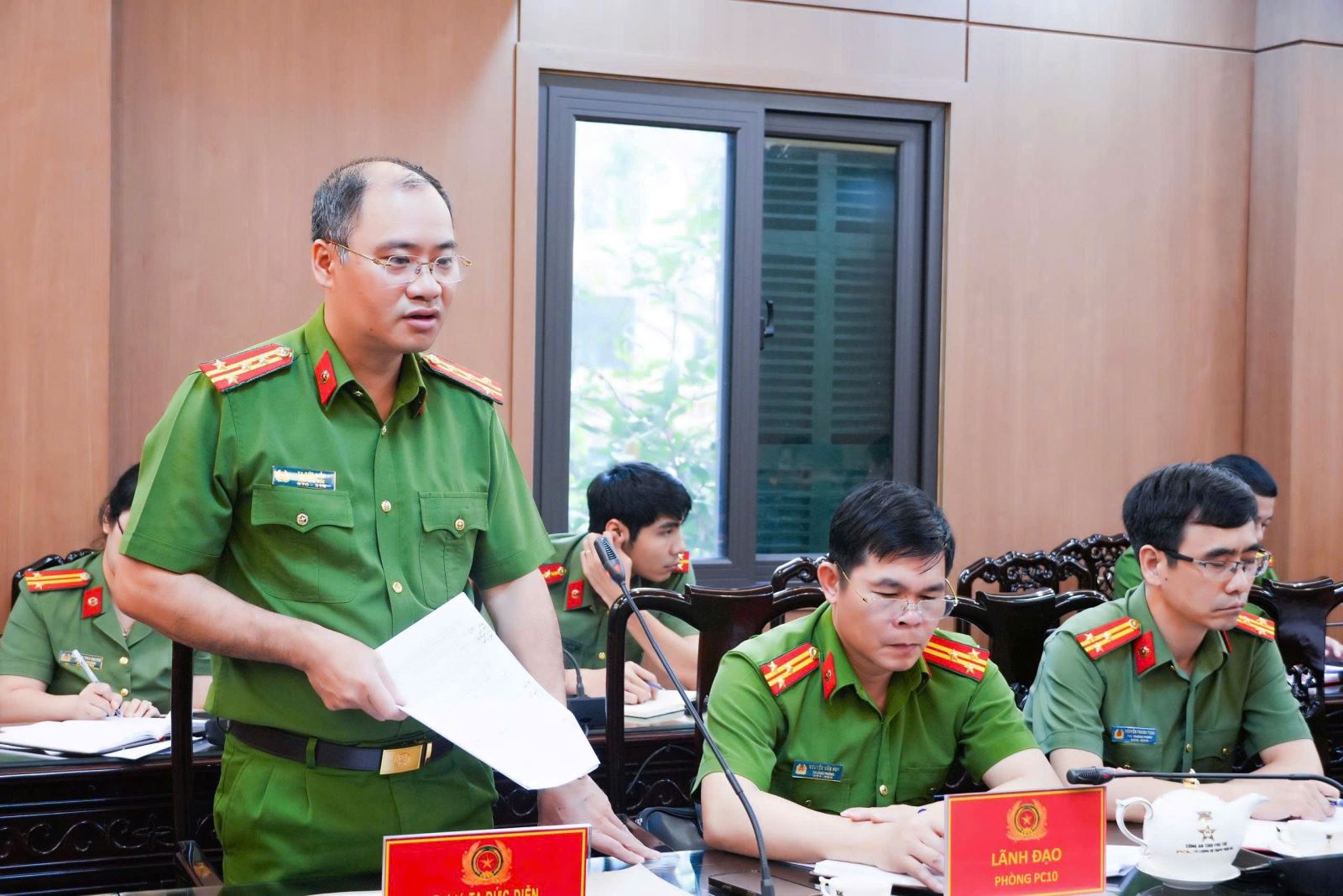 Đại tá Tạ Đức Diễn, Phó Giám đốc Công an tỉnh phát biểu tại buổi làm việc