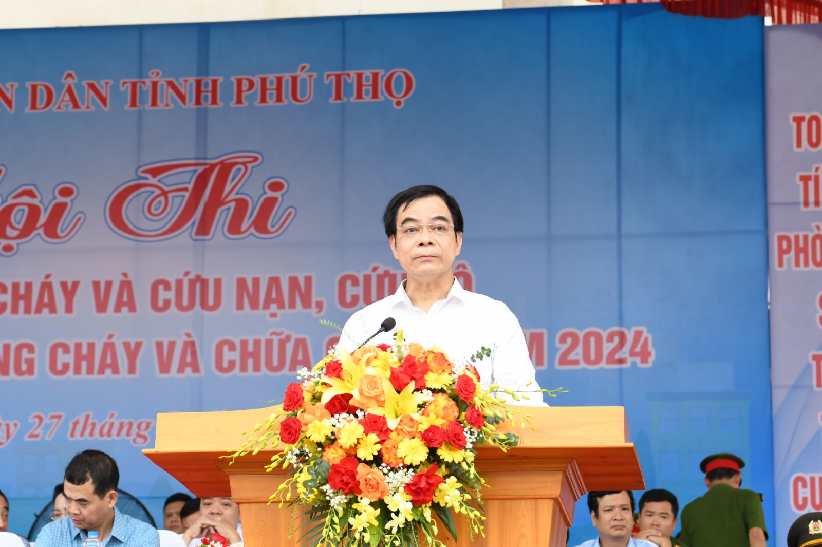 Sáng 27/5, UBND tỉnh Phú Thọ tổ chức Hội thi nghiệp vụ chữa cháy và cứu nạn, cứu hộ “Tổ liên gia an toàn phòng cháy, chữa cháy” (PCCC) năm 2024. Dự hội thi có đồng chí Phùng Khánh Tài, Phó Bí thư thường trực Tỉnh ủy; đồng chí Nguyễn Thanh Hải, Phó Chủ tịch UBND tỉnh, Trưởng Ban tổ chức hội thi; đồng chí Thiếu tướng Nguyễn Đình Hoàn, Phó Cục trưởng Cục Cảnh sát PCCC và CNCH Bộ Công an; đồng chí Đại tá Lâm Văn Vinh, Phó Giám đốc Công an tỉnh; đại diện lãnh đạo các sở, ban, ngành của tỉnh; lãnh đạo UBND các huyện, thành phố, thị xã.