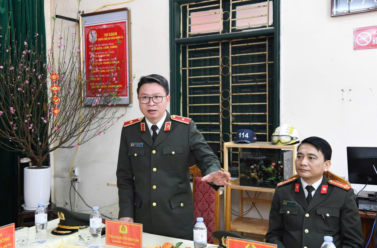 Thay mặt cán bộ, chiến sĩ lực lượng Công an tỉnh Phú Thọ, đồng chí Thiếu tướng Nguyễn Minh Tuấn, Giám đốc Công an tỉnh phát biểu cảm ơn sự quan tâm của đồng chí Phó Bí thư Tỉnh uỷ, Chủ tịch UBND tỉnh và đoàn công tác đã dành thời gian thăm, động viên, chúc Tết cán bộ, chiến sĩ các phòng Cảnh sát cơ động, Cảnh sát PCCC và CNCH nói riêng, lực lượng Công an Phú Thọ nói chung. Đồng chí Giám đốc nhấn mạnh: Lực lượng Công an tỉnh Phú Thọ triển khai thực hiện nghiêm, có hiệu quả các ý kiến chỉ đạo của đồng chí Chủ tịch UBND tỉnh, tiếp tục xây dựng lực lượng Công an tỉnh trong sạch, vững mạnh, chính quy, tinh nhuệ, hiện đại, đáp ứng yêu cầu, nhiệm vụ trong tình hình mới, góp phần giữ vững tình hình ANCT, TTATXH trên địa bàn tỉnh. Đặc biệt, lực lượng Công an sẽ triển khai đồng bộ, hiệu quả các giải pháp, góp phần bảo đảm tuyệt đối an toàn trước, trong và sau Tết Nguyên đán, phục vụ Nhân dân vui Xuân, đón Tết an toàn.